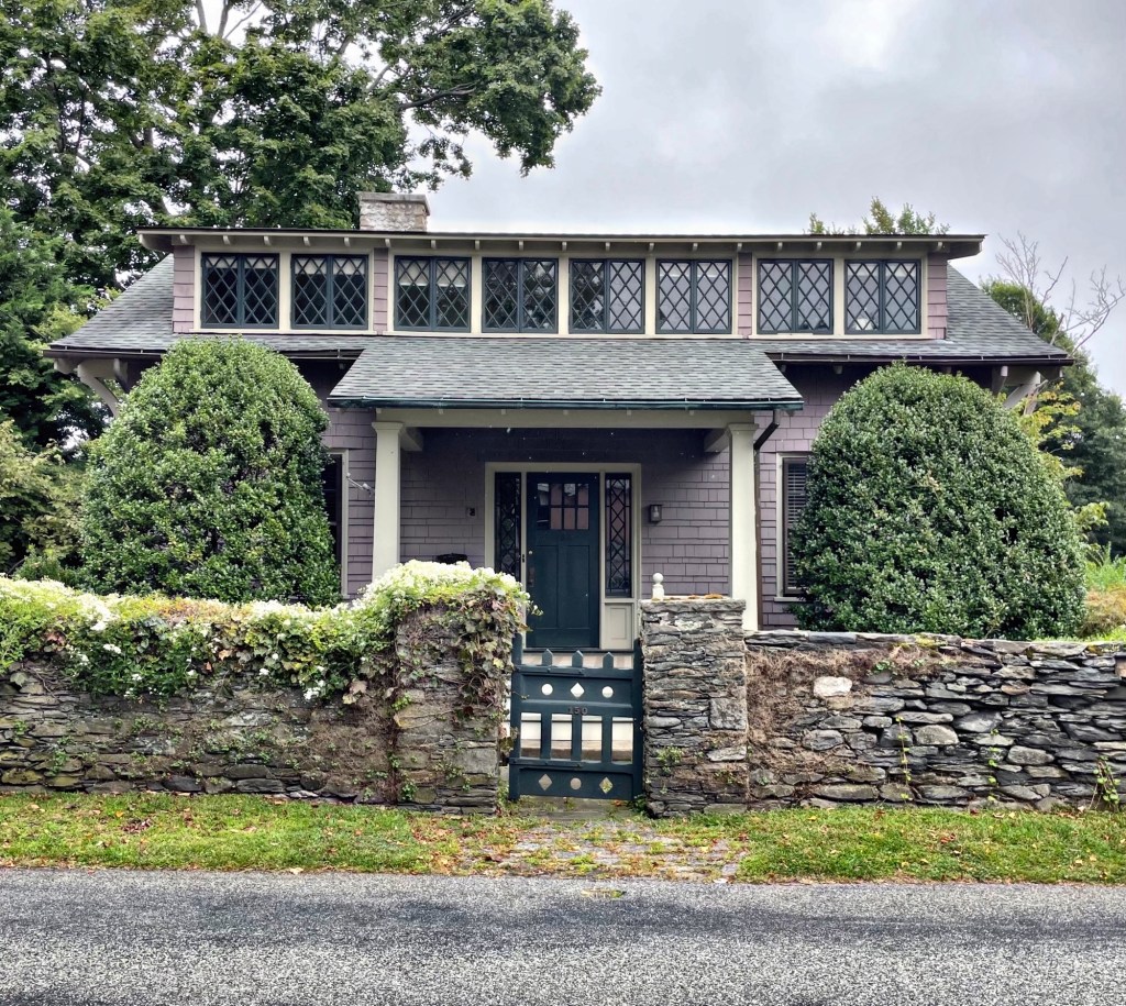 Located on Amory Street in Brookline, this handsome Arts and Crafts style residence dates to about 1908 and while clearly Craftsman in style, does appear to follow the horizontality and form of the Prairie School of architecture, popularized by famed architect, Frank Lloyd Wright. While the architect of this house is unclear, we do know that the first owners were Mr. Frank T. Partridge and his wife, Edith Stevens Partridge. The stucco house features a horizontal belt course, shallow hip roof with broad eaves supported by brackets, and elaborate entry and porches. The colors enhance the architecture of the home perfectly.