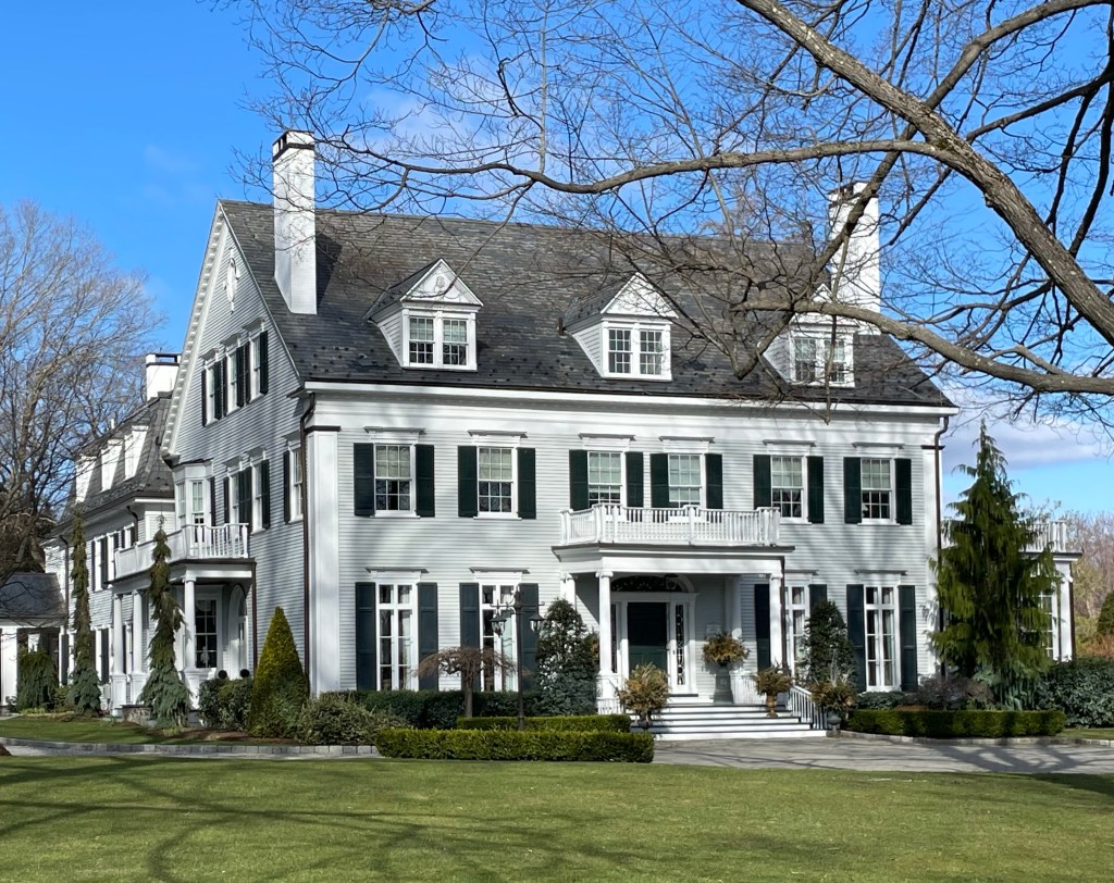 After the American Revolution, Lt. Joshua King settled in Ridgefield and built the King Mansion in 1801, a Federal style home that commanded the Main Street lot. King was born in Bridgewater, Massachusetts and fought in the Revolutionary War near the border of Connecticut and New York. After the war, he settled in Ridgefield and married one of the most eligible bachelorettes in town Anne Ingersoll. Anne was the daughter of the Rev. Jonathan Ingersoll, pastor of the Congregational Church of Ridgefield. After a long life running a store and raising a family, Joshua died in 1839, a year after his wife. The mansion was inherited by their son Joshua Jr. until his death in 1887. In 1889, a fire destroyed much of the house. When it burned down, The New York Times described it as “the grandest old mansion in the village.” It was quickly replaced by the current house, modeled after the original but larger, which was placed much farther back from the road in the Colonial Revival style. Fire damaged the house again in the 1990s, and the present structure was restored and enlarged from 2002-2004, its HUGE!