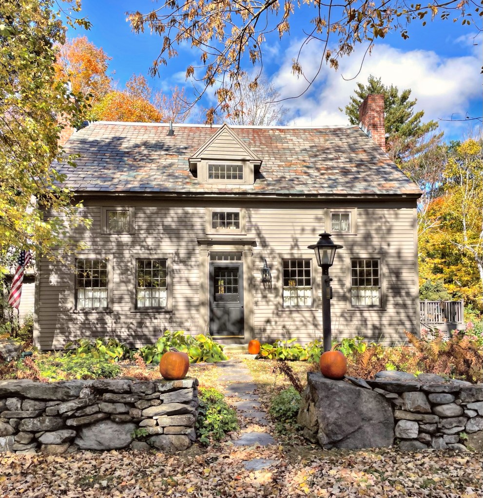 This charming cottage in Dorset is one of four houses in the village which were moved here by Charles Wade in the 1920s and ‘30s. Wade was born in Dorset and saw declining population with the marble industry failing. He sought to re-invigorate the town by advertising its natural beauty and brought in homes and buildings from nearby to fill the “missing teeth” (including the building that presently houses the Dorset Historical Society). Assembled from parts of various Enfield, Massachusetts buildings moved to Dorset this 1½-story, wood-framed, clapboard house stands on a marble ashlar foundation and is said to have been built by Wade for his daughter, Laura Wade.