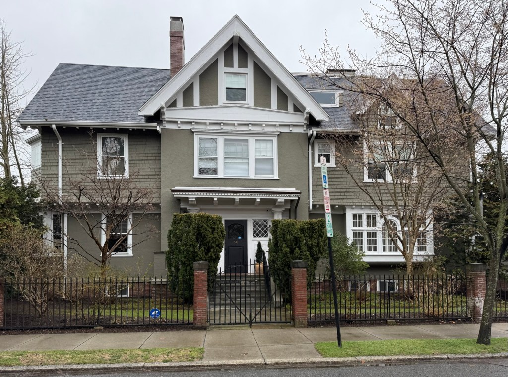 Located next to the colorful Wadleigh-Friend House on Highland Avenue in Somerville, the Dr. Thomas M. Durell House stands as a more academic example of the Colonial Revival style, but leaning more towards Arts and Crafts style than Queen Anne like its neighbor. This residence was built in 1897 for Dr. Thomas M. Durell, a Harvard-educated doctor and surgeon who, at the formation of the Tufts Medical School, was appointed Lecturer on Legal Medicine, and in 1895, was made Professor of that subject. Architects (and brothers) Edwin King Blaikie and William Everett Blaikie designed the residence for Dr. Durell along with a stable at the rear. While the house exhibits Colonial Revival detailing from the Palladian window and proportions, there are some Arts and Crafts style influences including the shed dormers, shingled siding, inset porches, and broad overhanging eaves with exposed rafters.