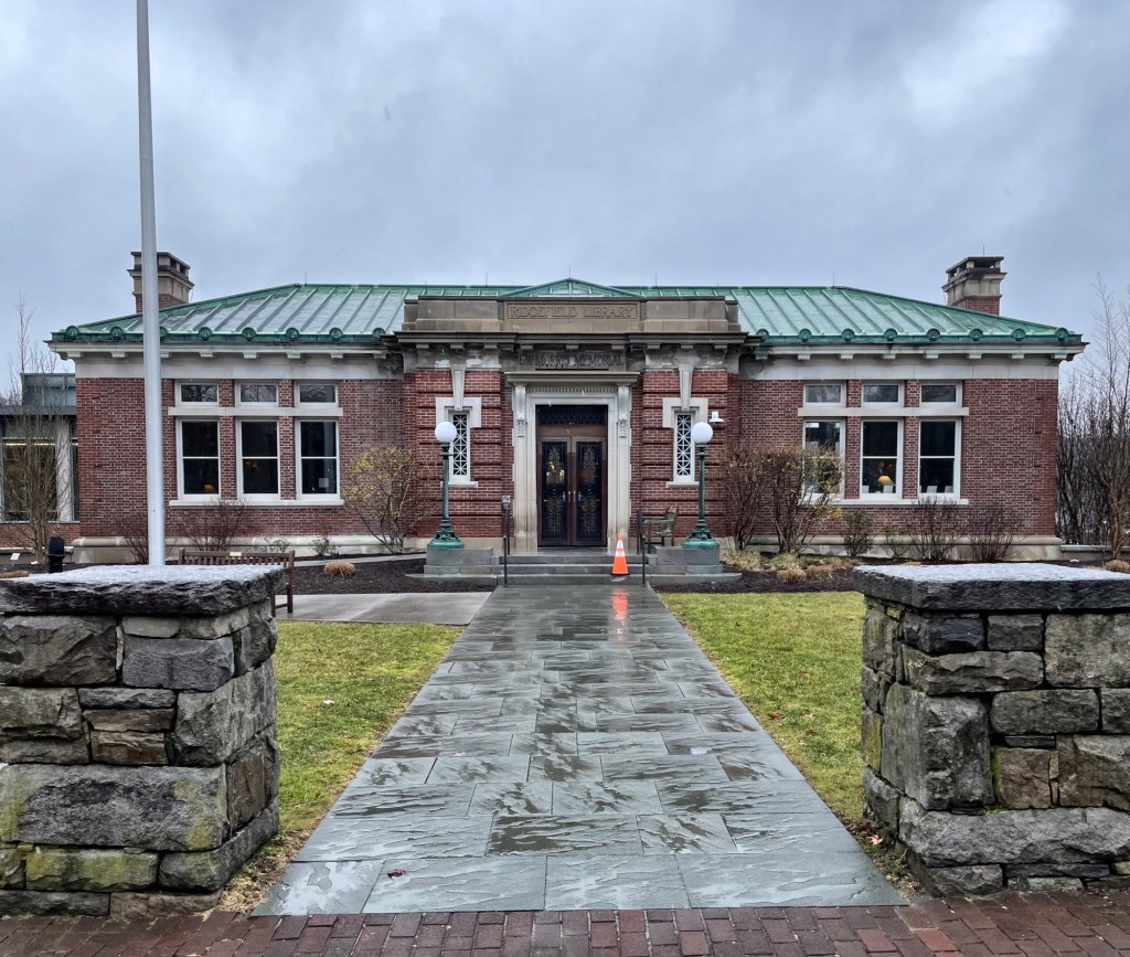 The Ridgefield Public Library is an intriguing Beaux Arts style building from the turn of the 20th century. Built in 1901, the brick structure replaced the Smith Tavern, a 1798 frame structure built by Amos Smith right on Main Street. In 1900 the Smith Family sold the property to James N. Morris who had this library built in memory of his wife, Elizabeth, donating it to the town. Architect Raleigh G. Gildersleeve is credited with the design which is comprised of a one-story building constructed of brick with cast stone trim details and ironwork at the door. The library was given later additions, which are recessive in location and detailing to let the original building shine, as it should!