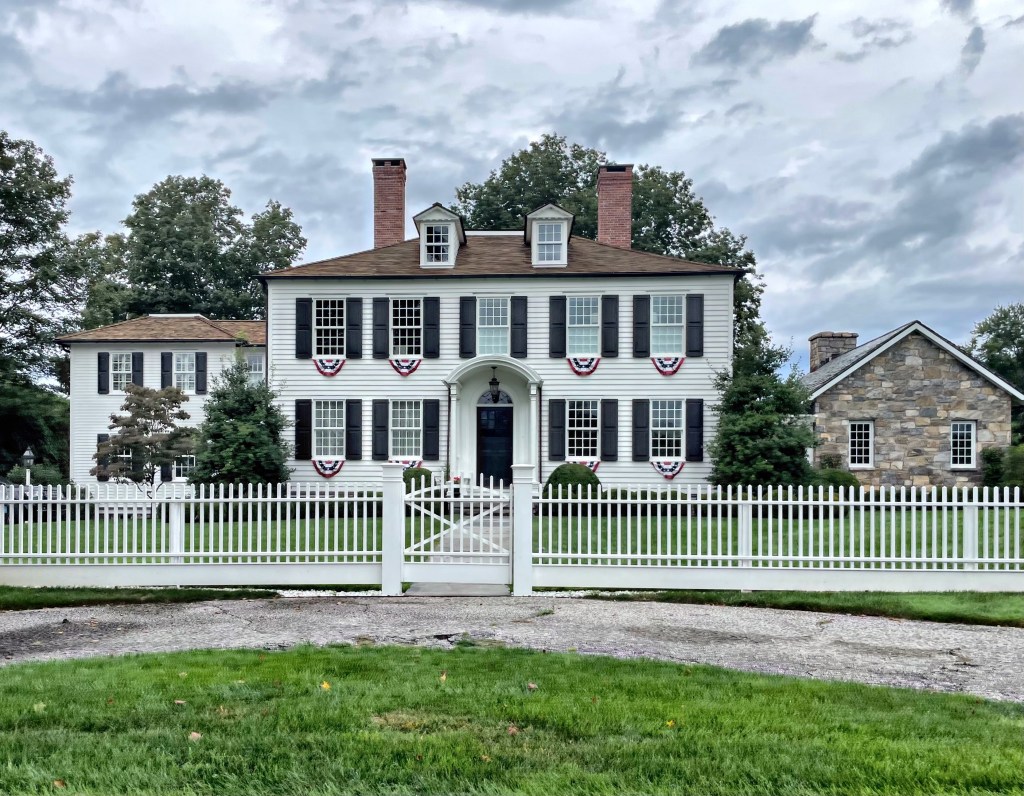 One of the oldest extant houses in Ridgefield, Connecticut is this charmer, which was moved not once, but twice! The house was built for David Scott (1678-1760), an Irish-born resident of the town, who purchased one of the town’s original Main Street house lots which sat undeveloped. Scott had abandoned his wife, Mary in Ireland, and settled in Ridgefield, entering into a new relationship with Elizabeth St. John. A woman scorned, Mary unexpectedly arrived in America and filed suit against her husband, citing Elizabeth as the “pretended wife of David Scott.” A judge awarded Mary three acres of her husband’s land. David Scott and his second wife lived at this 1714 house until they moved in 1740. His property (which included two enslaved Africans) was sold to Vivus Dauchy, a Frenchman. In the 1920s, as the Scott House section of Main Street commercialized, the owners relocated this house to Catoonah Street, building a commercial block in the former location. After numerous other owners, the most recent owner, The Ridgefield Preservation Trust (now the Ridgefield Historical Society) put it to use as a new historical society headquarters, after saving the Colonial-era home from demolition for stores and a parking lot! It was relocated to its current site and has been meticulously restored.
