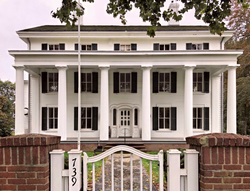 Richard Varick Dey (1801-1837) was a young divinity student from New York City, attending the Theological Seminary in New Brunswick, New Jersey, when he met Lavinia Agnes Scott (1805-1886). Dey was the son of prominent New York attorney Anthony Dey and Catharine Laidlie; Catherine’s father, the Rev. Archibald Laidlie, was the first minister called to preach in English in the Dutch Church in New York City. Richard and Lavinia fell in love and became engaged on December 27, 1820. However, Lavinia’s parents were opposed to Richard, and her father even asked Richard’s theology professors at Rutgers to try to discourage his pursuit of Lavinia. It did not work and they married in September 1822. After graduating from the Seminary in 1822, Richard was licensed by the Congregationalists and the young couple moved to Greenfield Hill, in Fairfield, Connecticut, where he preached from 1822-1829. Local history states that it was actually Lavinia who designed this house in 1823 for their family and oversaw the builders during its construction. The Federal style house stands out for its clear Dutch form with its roof projecting to create a recessed verandah, likely influenced by the couple’s New York/New Jersey upbringing.