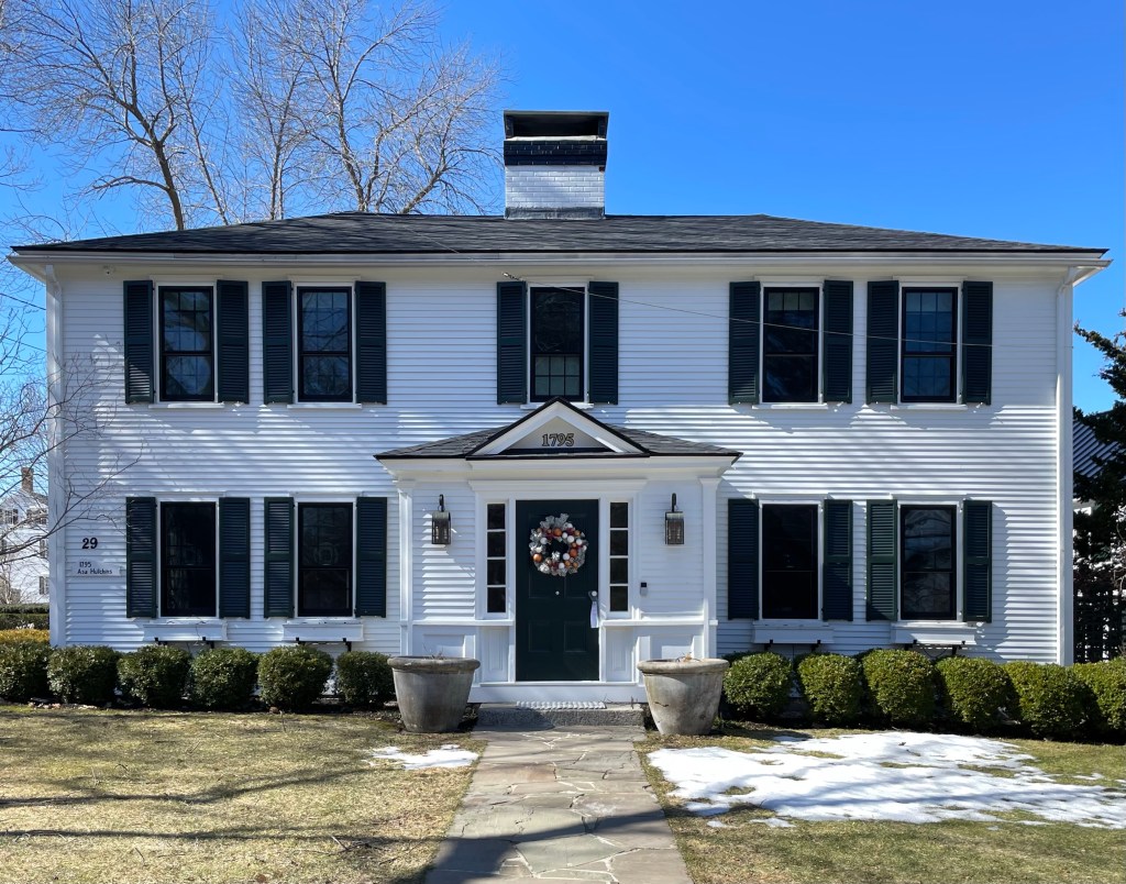 The Larkin-Ladd House at 180 Middle Street in Portsmouth, New Hampshire, is a three-story, masonry Federal-style residence with symmetrical facade, built for one of the city’s wealthiest merchants. Samuel Larkin (1773-1849) was born in Charlestown and moved to Portsmouth, marrying Ann Jaffrey Wentworth, a daughter of Col. Joshua Wentworth. During the War of 1812, Samuel Larkin made his fortune as an auctioneer, selling the contents of English ships captured by local privateers. It is believed that fourteen privateers and their crews worked out of Portsmouth Harbor and are said to have captured an estimated 419 British ships! With the profits from stolen goods from these British ships, Larkin purchased lots on Middle Street and began construction of this stately residence. He (and mostly his wife), had twenty-two children, although roughly half of them died before reaching adulthood. By the late 1820s, financial hardship fell on Larkin and he sold this property, moving into his house next door, which before this was his original residence and later rented to boarders. The Federal style mansion was later owned by Henry H. Ladd, a prosperous Portsmouth shipping merchant, who also served as President of New Hampshire Bank and Portsmouth Savings Bank. The Larkin-Ladd House is undoubtedly one of the finest Federal style residences in New England, and stands out for its entrance, flanked by Palladian windows and the slightly recessed elliptical surrounds at the first and second floor windows. Additionally, the historic stable, also from the 1810s, maintains much of its architectural integrity.