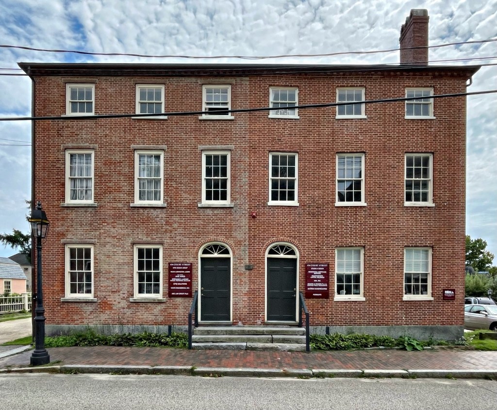 The Shapley Townhouses in Portsmouth, New Hampshire sit on Court Street and were built around 1814-15, after the Great Portsmouth Fire of 1813 had destroyed the center of town. It was constructed to conform with the new Brick Law that required all new buildings in downtown Portsmouth to be built of “fireproof” brick. The paired townhouses are unusual in the city as a particularly well-preserved example of a Federal period double-house. The house was built by Captain Reuben Shapley, a ship’s captain and merchant. In about 1973, this building was remodeled into a temporary home and counseling center for troubled youth. Suffering from deferred maintenance and the direct proximity to the Strawberry Banke Museum, the Strawberry Banke Foundation purchased the double-house who rent out spaces inside to offices, providing a revenue stream to maintain and further showcase the history of the port town.