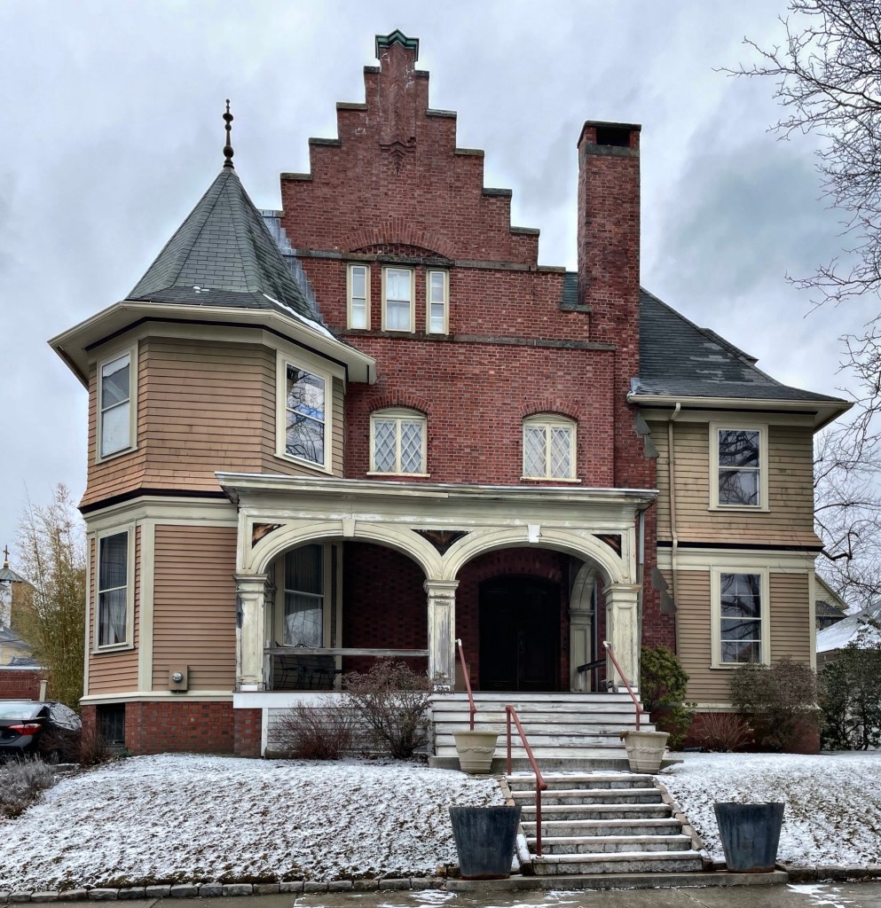 In 1905, George H. Cotton and his wife, Cora S. Cotton, purchased a house lot on Amory Street in Brookline and hired famed architect, William Gibbons Rantoul, to design this home for their son and daughter-in-law. George Cotton was a manufacturer of brass tubing and also the founder of the Belmont Springs Water Company and maintained homes in the Back Bay of Boston and in Belmont. His son, Harry W. Cotton, also worked for the American Tube Works and lived in this home with his family. The Cotton House is an architectural blending of Dutch Renaissance Revival and Arts & Crafts styles. The stucco siding and entry portico are in the Craftsman style, while the prominent Flemish gable on the central pavilion and round arched pediments for the dormers are in the Flemish mode.
