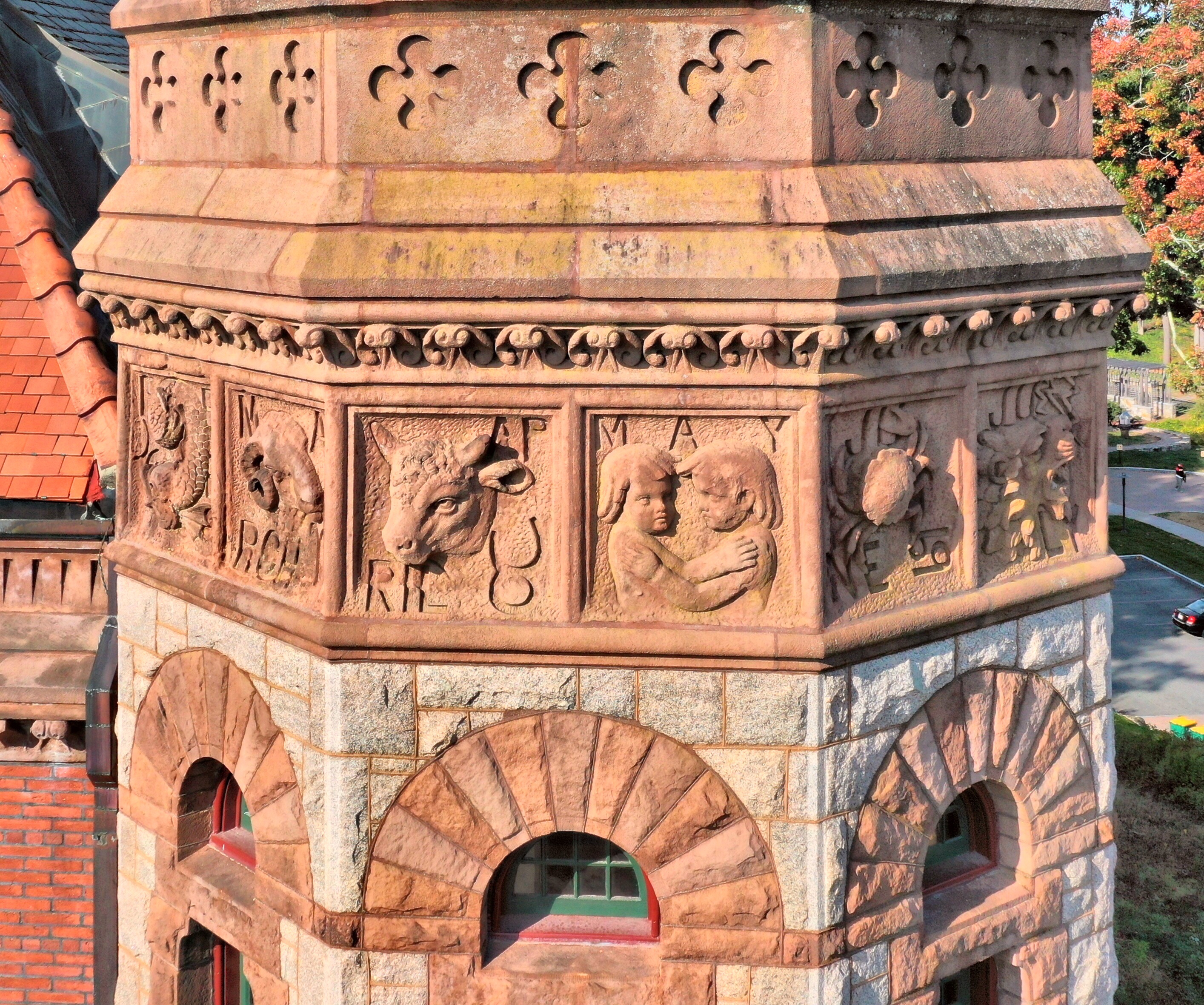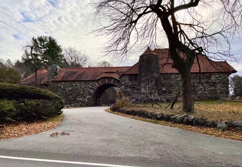 In 1880, twenty years after Frederick L. Ames built his rural estate “Langwater”, he felt the need to give the property more rural character, especially given the close proximity to the Ames Shovel Works. Emulating old European estates with gatehouses, Ames hired star-chitect Henry Hobson Richardson, to design a gate lodge at the entrance to his property, fitting of one of the richest men in Massachusetts. Richardson’s design for the gate lodge was oriented longitudinally and is bisected by the arched entry to the estate. The large room on the left was intended to serve as a storeroom for flowering plants, and the two-story portion had a caretaker’s residence on the lower floor and a “bachelor hall” for men’s socializing and spill-over bedroom. The building uses glacial boulders found on the expansive grounds and older stone walls, with trim of Longmeadow brownstone. The bright red terracotta roof contrasts boldly with the rough stone walls. The building is one of the most beautiful structures I have seen, but can be difficult to photograph without trespassing. Ugh!
