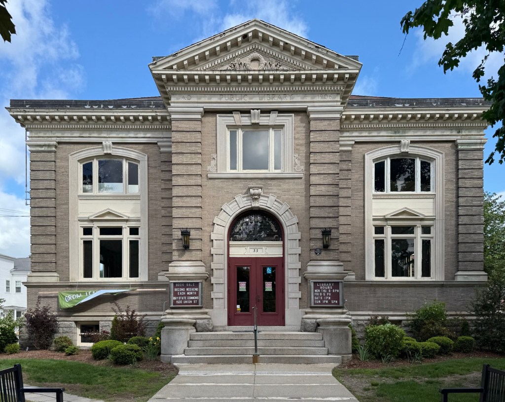 The Westborough Public Library is a handsome, two-story, masonry building with additions to showcase the growth and importance of the library to the community. This building was constructed in 1908, replacing a small space in the first floor of the old Town Hall (since demolished) as the community’s first purpose-built library. The structure was designed by architect Penn Varney, who specialized in civic buildings in New England. The Classical Revival style building is constructed of buff brick with stone trimmings. Of particular note, the quoined arched entry and pediment with central wreath motif, add much to the design. The library was eventually outgrown, and in 1980, an addition was added to the rear, in a style taking cues from the main building, but clearly of its time. The Town of Westborough about to undergo a restoration and renovation to the library, including a new roof, HVAC systems, interior renovations and the restoration of the 1908 windows.