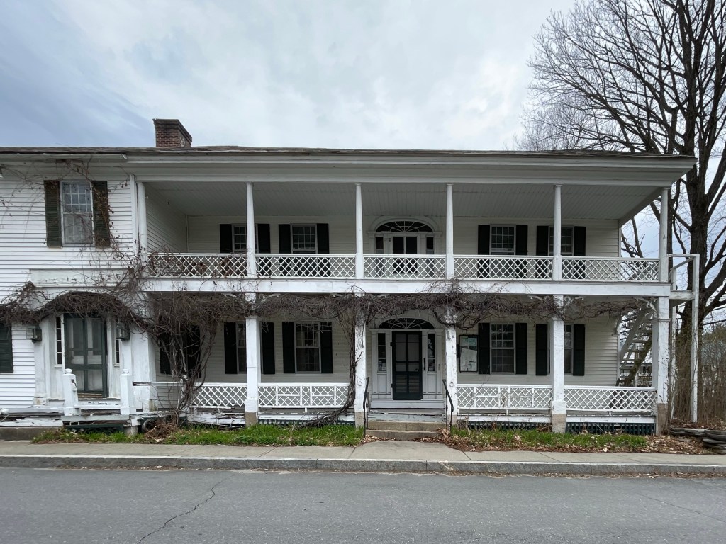 Originally constructed in 1787 on Newfane Hill, the main block of this historic inn was moved in 1825 for owner Anthony Jones, to its present site overlooking the Common in Newfane, Vermont. The Federal style building was oriented towards the main street, with its length extending along the town common. The inn was a busy stop for lawyers and judges who worked at the courthouse across the street. Porches were added likely in the early 20th century. After a period of neglect, the inn was restored by decorator Christoph Stumpe Castou, and later sold. The inn was run for 42 years in the second half of the 20th century by Eric and Gundela Weindl, a couple who were both from Germany, yet met at Stratton Mountain in Vermont in 1963, marrying in 1968. They operated the inn until 2011.