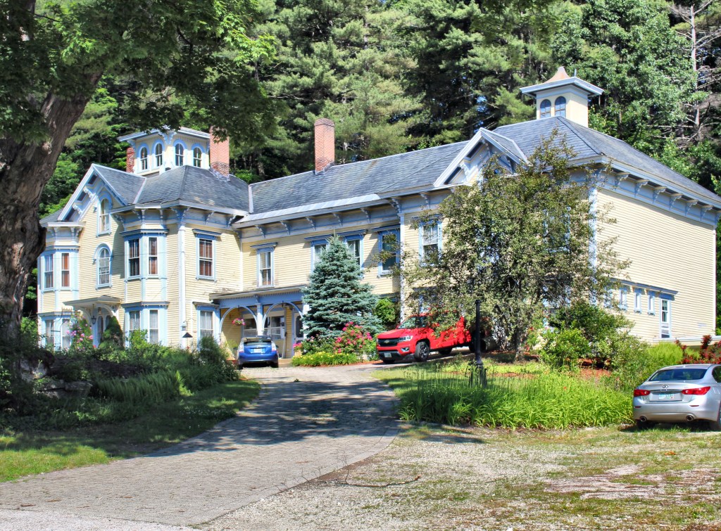Wilton, New Hampshire has a hidden enclave of high-style summer “cottages” built for wealthy residents in the early 20th century. The last of these examples I will feature is the Sweezy House, located in Wilton Center. The Federal Revival style mansion was built for Everett and Caroline Sweezy, summer residents who split their time between New Hampshire and New York. Mr. Sweezy was a banker for the Riverhead Savings Bank which was located on Long Island, which too was a summer destination. The couple hired the firm of Howe and Manning, led by female architects Lois Lilley Howe and Eleanor Manning, to design the home. The house is set back far from the street behind a rustic stone wall. The property remained in the Sweezy Family for four generations.