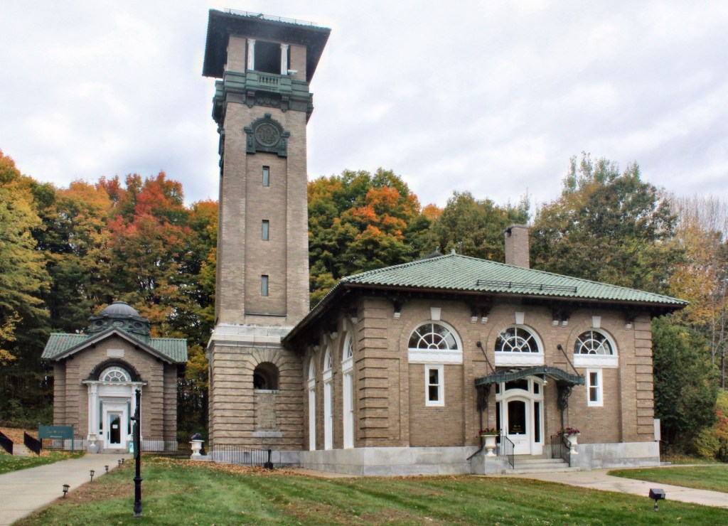 The Poland Springs Bottling Plant and Spring House contribute to the rich history of what was once a major American spa resort. In as early as 1797, Jabez Ricker founded a hostelry at the springs on his property in Poland, Maine, and later claimed that drinking the water saved him from a serious illness, a claim that was expanded by other members of his family for generations. In 1876, Hiram Ricker, Jabez’s grandson, opened the Poland Spring House, a “watering place” or spa, acclaimed for its health-giving environment. While the grand hotel burned in 1975, the bottling plant and spring house designed and built in 1907, still remains on the grounds. In 1903 Hiram Ricker’s son, Edward P. Ricker, wrote to architect Harry C. Wilkinson, a native of Poland, Maine, to solicit a design for his proposed bottling plant and Spring House to allow visitors to drink the natural spring water. His idea of bottling the spring waters for transport and sale, which would eventually be the main catalyst for Poland Spring water today! The extravagant Italian Renaissance Revival style buildings sit side-by-side and are of a high-style despite the relatively utilitarian purpose of the facility. Both structures are very well-preserved and are operated as museums, to learn more about the history of the spring water and resort here.