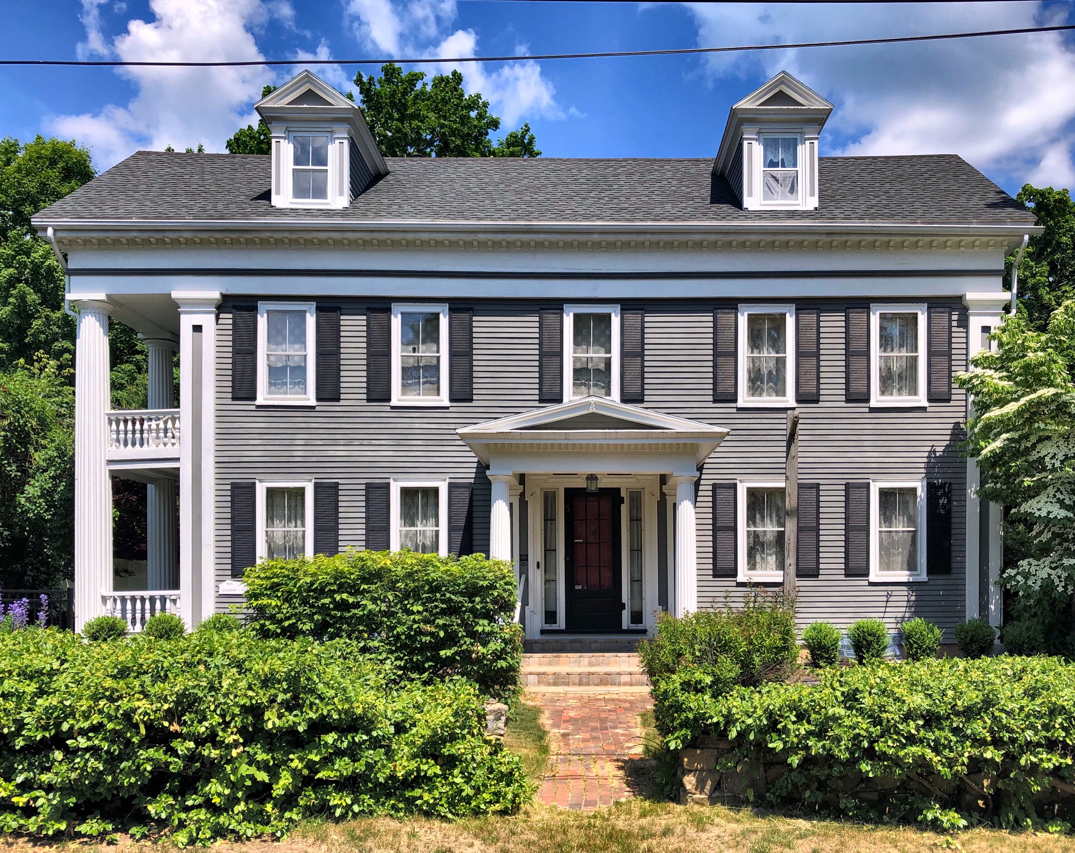 If you stroll down Maine Street in Kennebunkport, you cant help but notice the most charming saltbox house. Constructed in 1805 by Samuel Davis, a master builder in Kennebunkport, the Federal home likely had a saltbox roof originally which would have housed the kitchen. After the Civil War, the home was owned by Silas Perkins, who then sold the home to his daughter, Felicia (Perkins) Cleaves and her husband, Albert, a teacher. By the 1870s, Felicia had the Colonial home completely renovated, turning into a Gothic Revival showpiece. Mrs. Cleaves added a new wing to the right of the original house, for she desired the high ceilings that were common during the Victorian era. The building became known in town as “Aunt Felicia’s Folly” and alternately, “the Witch House.” In 1966, owners restored the home back to what it likely looked like before the 1870s renovation, adding a saltbox roof.
