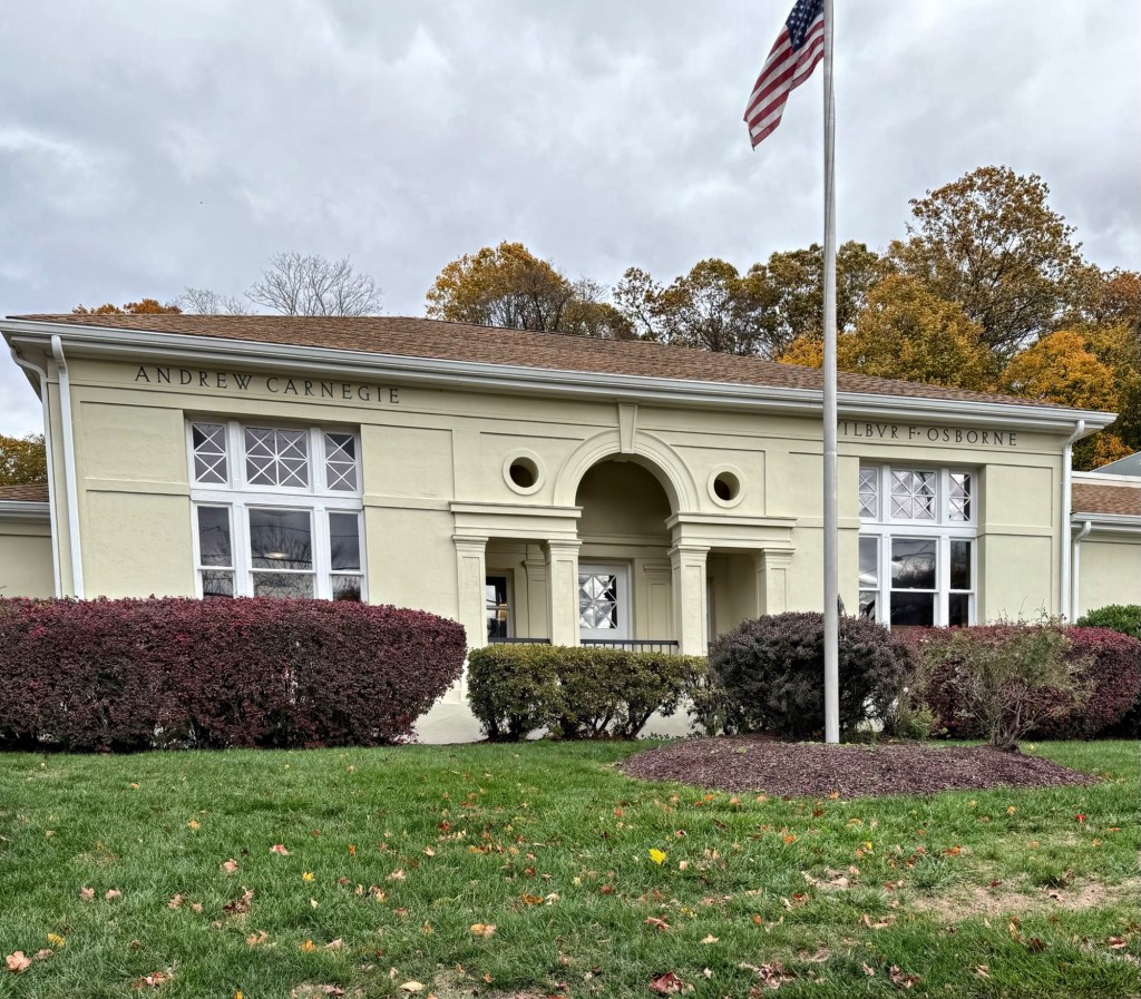 The Derby Neck Library in Derby, Connecticut, is a beautiful example of an early 20th century library and one of a few Carnegie libraries in the state. The beginnings of the library began in 1897, when Wilbur F. Osborne and his wife, Ellen Davis Osborne, who lived at the nearby Osborne Farm, donated $50 to the nearby school to begin a small library in the building. After years of growth, Wilbur Fisk Osborne, requested funds from Andrew Carnegie, who was donating money to communities all across the country for such purposes, to build a new library for Derby Neck. In 1906, Carnegie donated $3,400 to the community, and planning began on the building. Sadly, Osborne died around the time the library opened in 1907. The building was designed in the Classical Revival style by architect, Henry Killam Murphy of Connecticut. Osborne’s daughter, Frances Osborne Kellogg, who inherited her father’s farmhouse nearby, directed the library until her death in 1956. The building was expanded in 1972 and again in 1999.
