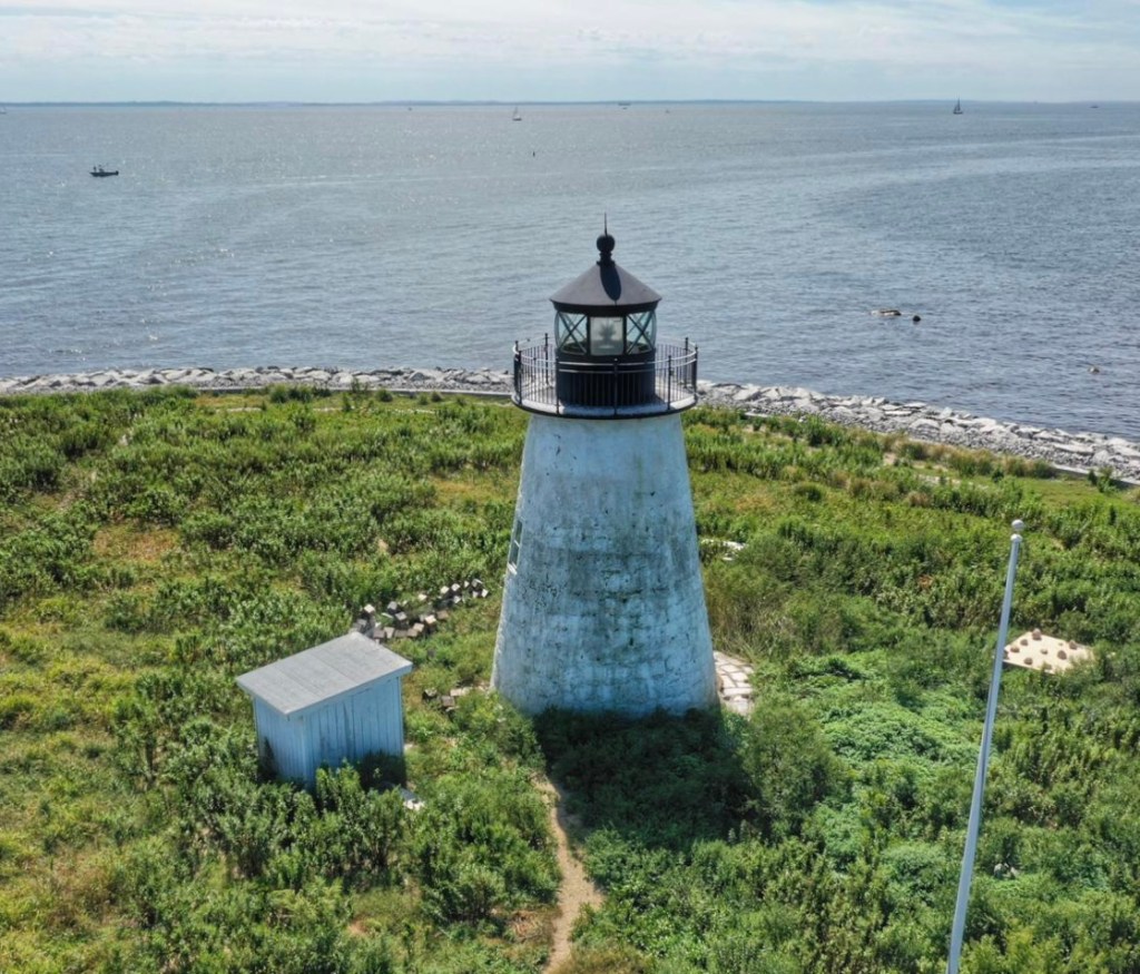 Bird Island sits about seven football fields away from the tip of the Butler Point peninsula, which juts out into Buzzards Bay in Marion. A small sitting area at the Kittansett Club provides a bench and amazing views of the open water and historic lighthouse in the distance. Immediately after the War of 1812, Marion became a hub of whaling and shipping with many sea captains building homes in town. As a result, Congress appropriated $11,500 for the purchase of Bird Island and the erection and stationing of a lighthouse. A 25-foot-tall conical rubblestone tower was constructed, surmounted by a 12-foot tall iron lantern. The accompanying stone dwelling was 20 by 34 feet, and a covered walkway connected the house and tower. William S. Moore, a veteran of the War of 1812, was appointed as the first keeper, which went into operation in 1819. There are legends about murder and hauntings on the island.