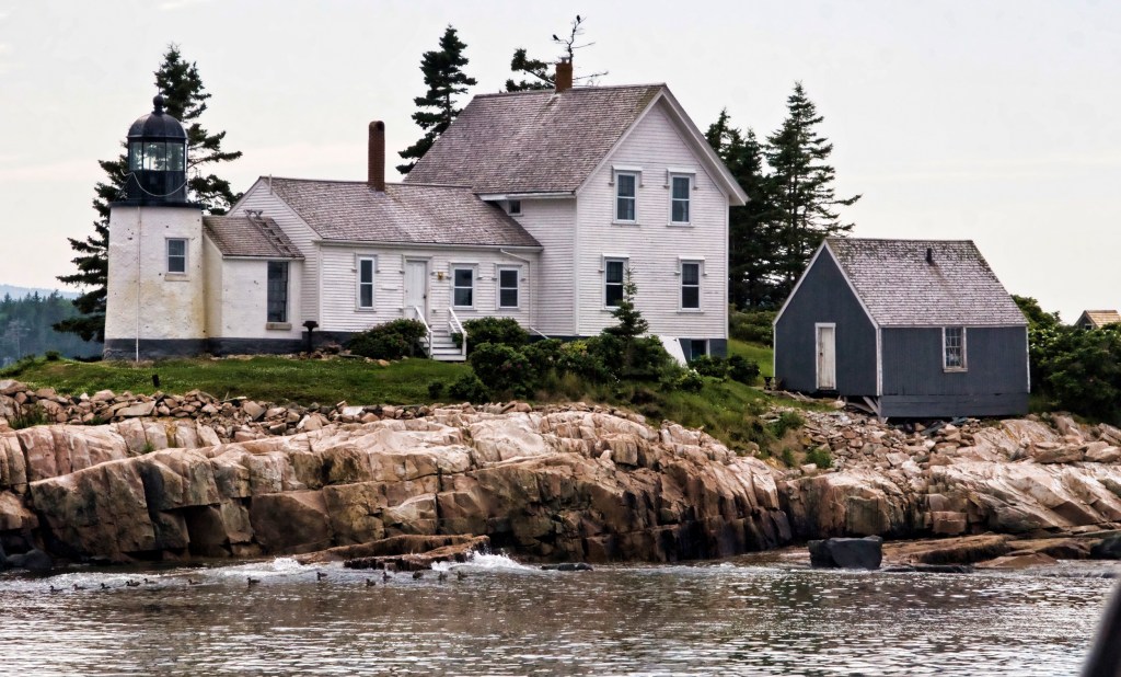 The Egg Rock Lighthouse sits in the middle of the Mt. Desert Narrows of Frenchman Bay between Bar Harbor and Winter Harbor. The lighthouse was constructed in 1875 to assist the already built Winter Harbor Lighthouse a short distance away, to provide guidance for the increased ferry traffic to Bar Harbor, which was quickly becoming a prominent summer colony. The architecturally unique lighthouse is comprised of a square tower projecting through the center of the square lighthouse keeper’s house, its unlike anything I have seen before. The station was automated by the United States Coast Guard in 1976, at which time its ancillary structures except the fog station were torn down. The light continues to be managed by the Coast Guard, and is not open to the public; the island and buildings are owned by the United States Fish and Wildlife Service.