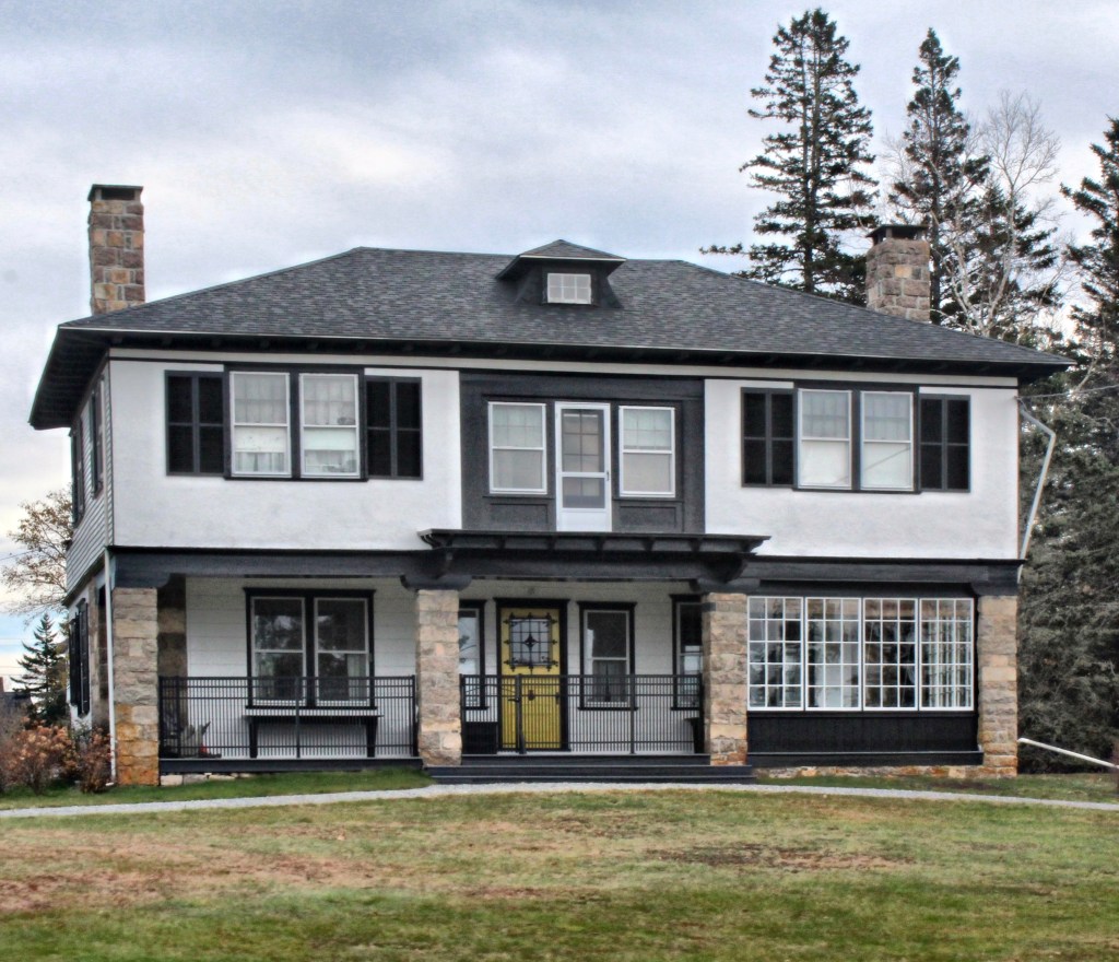 The Dixon Cottage on Grindstone Neck was built around 1891 for Alexander J. Dallas Dixon (1850-1948) who appears to have either shared the summer house with his brother Thomas, or sold the property soon after. The Dixon brothers (along with George Dallas Dixon), were early investors in the Grindstone Neck colony and they built summer homes here in its early development. The Dixon Cottage was the summer retreat for Thomas’ eldest son, Fitz Eugene Dixon, who married Eleanor Elkins Widener, a philanthropist and heiress to the Widener and Elkins families. Eleanor and Fitz would later own Park Cottage, featured previously. The Dixon Cottage deviates from the traditional Shingle style cottages seen so frequently on Grindstone Neck and is a refined example of the Queen Anne style with its varied siding, rounded tower, and asymmetrical plan.