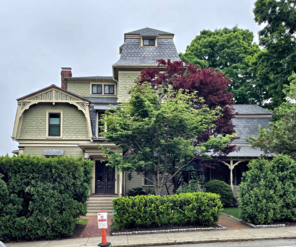 In 1868, James Wilkinson Clapp (1847-1931) married Eliza Tuckerman and they soon after moved into this large Victorian-era house on St. Paul Street in Brookline. James was the second son of Otis Clapp, a politician, publisher, and promoter of homeopathy. Otis Clapp operated a large homeopathic pharmacy, Otis Clapp & Son, which continued as a business after his death, evolving to encompass different areas of medical technology. It was one of the oldest-operating pharmaceutical manufacturers in the United States by the time it was acquired by Medique in 2008. The business allowed James, at about 22 years old, to build this stately home for him and his new wife to move into. The residence is Second Empire in style with Stick style ornamentation, and while mostly obscured by vegetation all year, it commands the heavily trafficked corner of Brookline.