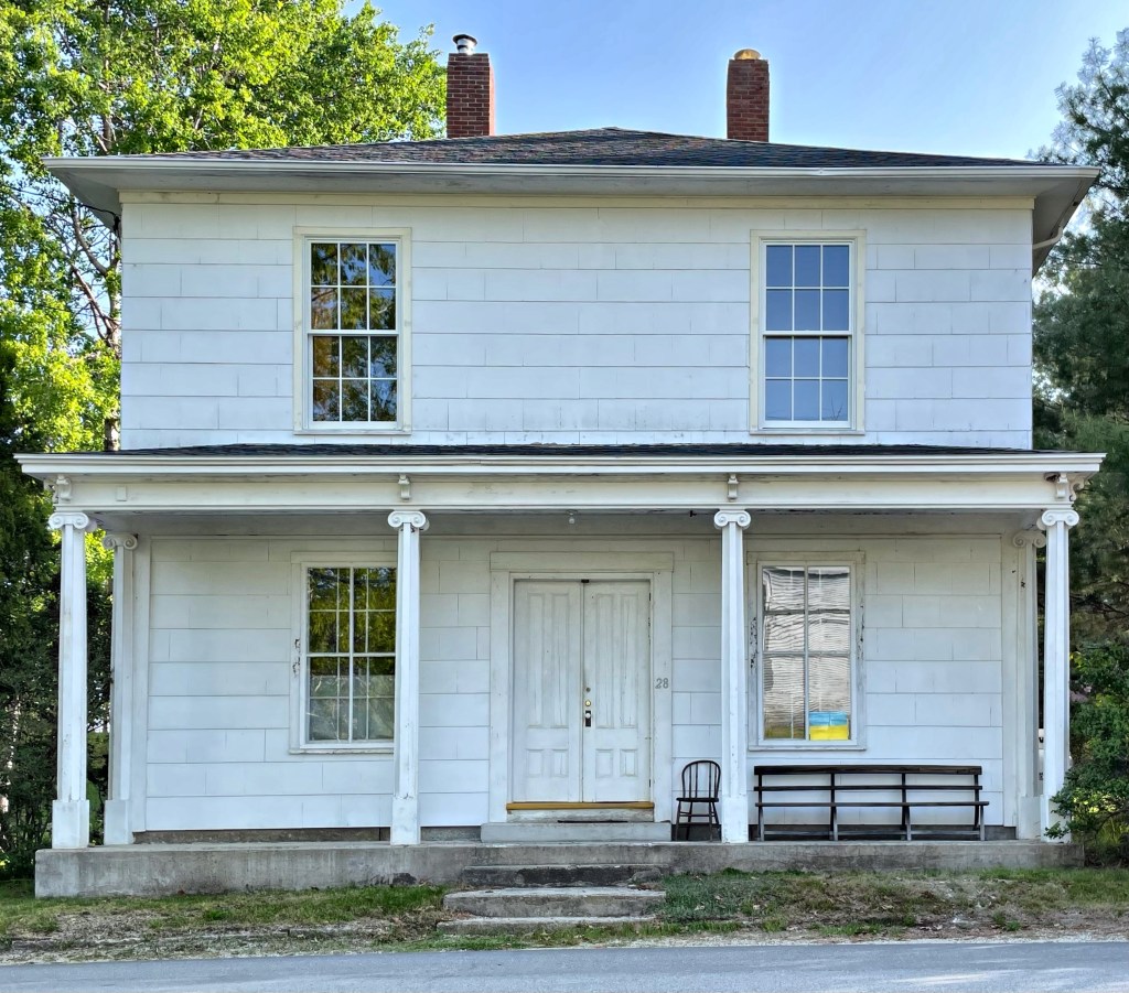 Located next door to the former High School (now the Town Hall) of Stonington, this mansard-roofed commercial building on Main Street is a prototypical example of late 19th century mixed-use architecture seen all over Maine. This building was constructed in the 1880s and known as Central Hall. The building contained retail spaces at the ground floor and tenement housing in the upper floors for workers at local granite quarries. The building is well-preserved and an important contributing building to the working village of Stonington.