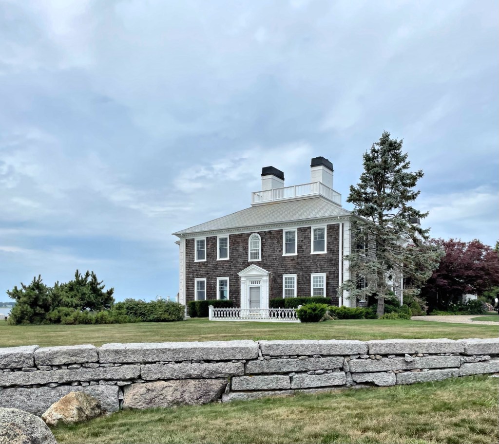 My favorite home in Marion, Massachusetts is this summer cottage on Water Street, overlooking Sippican Harbor. The home is said to have been built from a c.1840s house and enlarged by Reed as a summer home in the fashionable Shingle style. H. R. Reed, an agent for the Revere Sugar Refinery in Boston was well-connected in town and hosted President Grover Cleveland with Rev. Percy Browne ( a summer resident) at his cottage during the summer months. Evidently, Reed added the rubblestone elements, modified the porch, added a tower on the south elevation, the massive dormers at the roof, and is responsible for the exquisite Colonial Revival-style interior, from architect James Templeton Kelley. The home is arguably best known as the summer White House of Grover Cleveland, the only U.S. president to marry in the White House and the only two-time president to serve non consecutively – from 1885-89 and from 1893-97. The Cleveland’ Family summered in Marion between their time in the White House. In 1891, the President hoped to purchase the home, but could not settle upon a reasonable price, so he bought Grey Gables, a summer cottage in nearby Buzzards Bay (no longer extant).