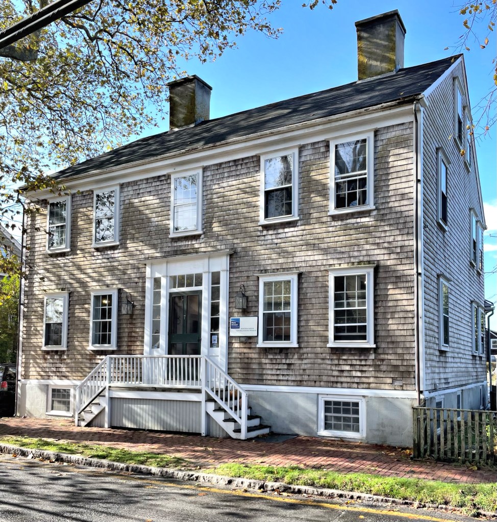 This charming commercial store was built in 1879 as one of five similar commercial buildings constructed on Nantucket as investment properties by Robert McCleave (1809-1878), a retired whaling captain. Located on Orange Street, this store was long occupied as a neighborhood grocery store, before the days of supermarkets with seas of parking. Antoine Sylvia Jr. (1835-1906), an Azorian-born merchant on the island purchased the property 1879 from McCleave and operated a grocery store at this location until his death in 1906. His wife, Elizabeth C. “Lizzie” Sylvia (1850-1929), retained the property and operated a shop where she sold wallpaper. In 2015-16, the façade was restored with the installation of a salvaged façade of nearly identical detail and dimensions built at 106 Main Street in 1869 also by McCleave. This façade was salvaged for re-installation here when that building was demolished in 2001. The Sylvia Store was given a preservation easement after the restoration, preserving it for another 150+ years to come!