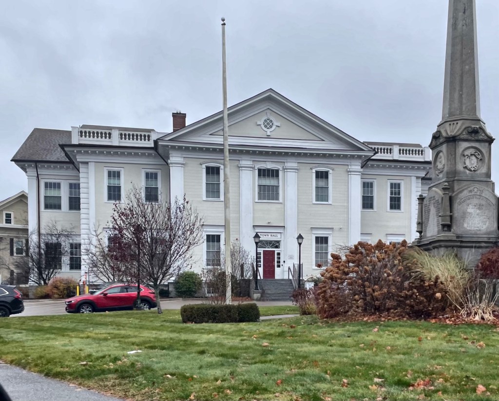 The land that is now Danvers, Massachusetts, was once owned by the Naumkeag branch of the Massachusett tribe. Permanent European settlement began in 1636, when present-day Danvers was known as Salem Village, a village of Salem. The historical event for which Danvers is best-known is the Salem witch trials of 1692, which began in the home of Rev. Samuel Parris, in Salem Village. Danvers officially separated from Salem in 1752 and is likely named after Sir Danvers Osborn, a Colonial Governor of New York. In 1757, Massachusetts incorporated Danvers as a town and, according to legend, King George II later vetoed this act of incorporation and returned his decree with the message, “The King Unwilling.” They simply ignored this royal veto, which was later included on the town’s seal! Danvers would eventually build a central town hall building , this structure, in 1854 which partially functioned as a high school as well. Plans were drawn by the Salem architectural firm of Emmerton & Foster in a pleasing blending of Greek Revival and Italianate styles. As the town grew, the building was expanded in 1883, and in the 1890s. When a new, purpose-built high-school was constructed elsewhere in town in the early 1930s, it was decided to renovate the town hall building. Due to financial constraints during the Great Depression, the town got a lifeline by the Federal government, who in 1934, appropriated $6,500 to the town for a renovated town hall as part of the New Deal. Additional funds from the WPA went to murals (many of which still adorn the walls inside). Architect Lester S. Couch of Danvers, a partner in the firm Little & Browne, oversaw the renovations in the Colonial Revival style.