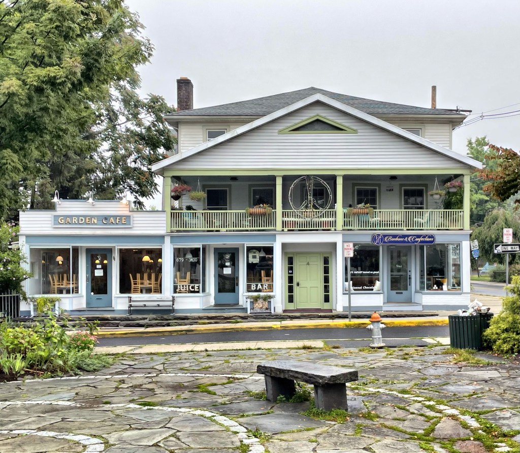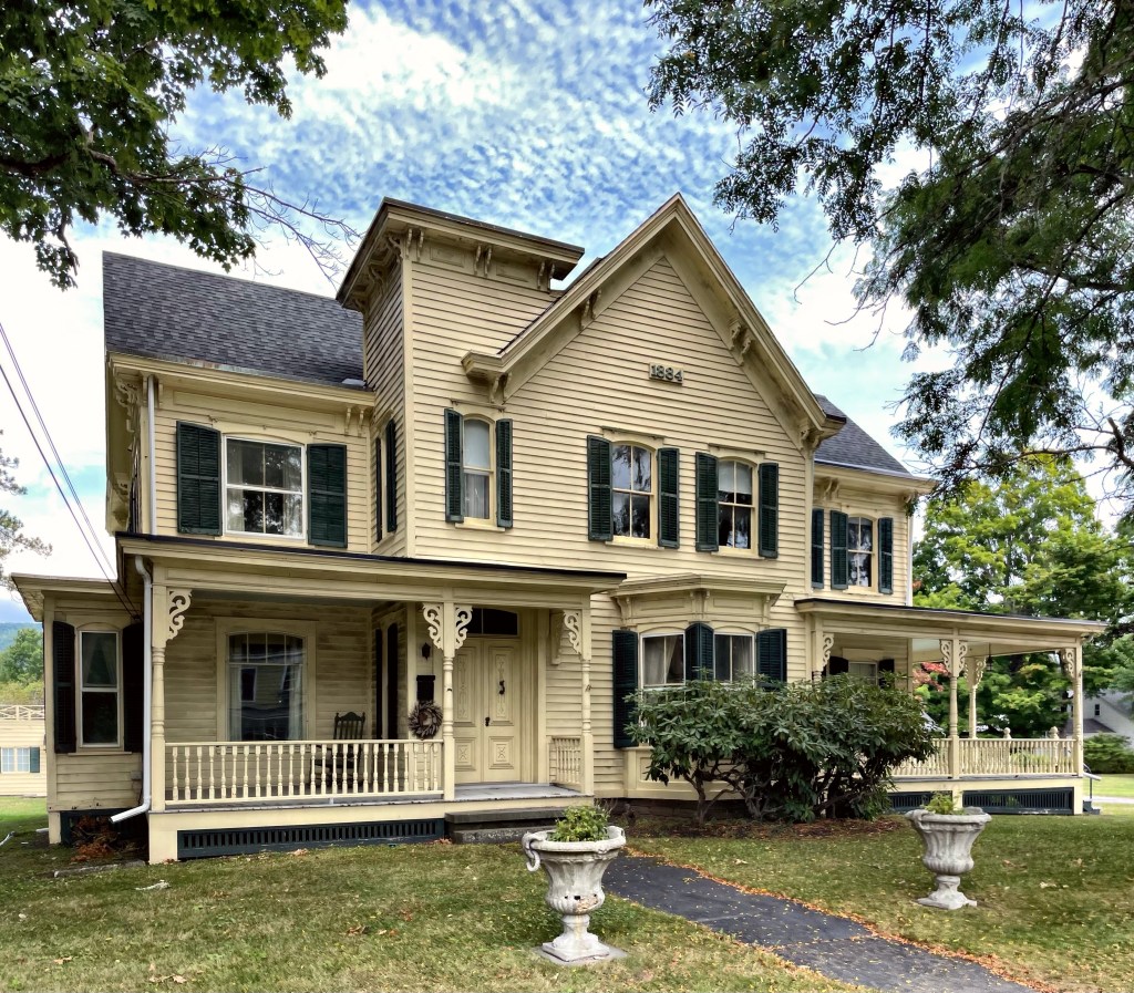 Tucked away in the town of Hunter in the Catskill Mountains of New York, the summer colony of Twilight Park has stood as an exclusive and private resort community established in the late 19th century. Twilight Park was born out of the Twilight Club, a Manhattan social club in the late-19th century and brought to life by founder, Charles F. Wingate. Mr. Wingate traveled to the mountaintop in 1887, and became enamored by its natural beauty. He arranged for the purchase of a former sheep’s meadow and led the construction of the first cluster of cottages in what would become a large community of over 100 summer homes. Cottages were laid out on roughly parallel roads at different elevations and on old connecting paths that later became roads with all lots built on ledges overlooking the Catskills. The first cottages were log cabins, and quickly followed by larger, Queen Anne style “cottages” as others invested in the development. Crossways Cottage is one of the many unique late-Victorian summer “cottages” in the exclusive Twilight Park colony in the Catskills of Hunter, New York. The cottage stands out for its cross-gable roof with overly deep eaves which are supported by rustic twig brackets, diamond sash windows, and the use of varied clapboard and shingle siding.