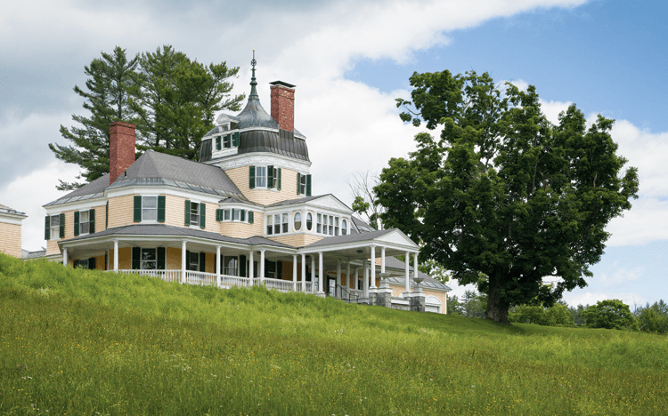 The South Congregational Church in Newport, NH, is located (as its name suggests) south of the commercial and civic heart of downtown Newport. The church congregation was founded in 1779 and grew substantially in the early 19th century. The church’s location, outside the present downtown, is the result of a long-running dispute within the town of where its civic heart should be located, to the north or south of the Sugar River. The consequence of this disagreement resulted in the placement of the Baptist church at the town common (north of the present-day commercial downtown), and the placement of this church here. The resulting development to the north of the river left this massive, brick Federal style church towering over the small working-class homes, with a majority of the town’s other significant Federal buildings built years later, like the Eagle Hotel and Old County Courthouse to the north of the river. The 1823 church is thought to have been designed by Elias Carter, who designed many Federal-era churches in the New England area.