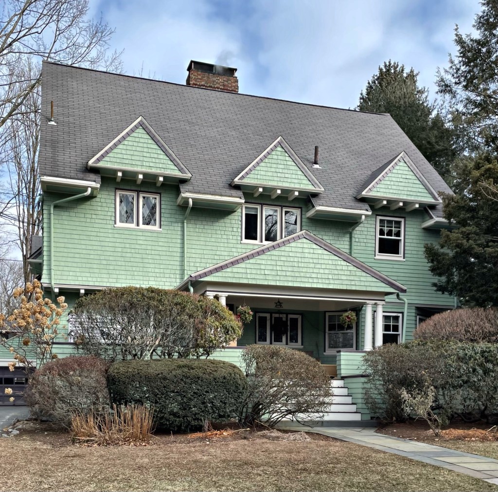 Waban in the late 19th and early 20th centuries was a hotbed for architect-designed houses as their own residences. This Colonial Revival/Tudor Revival style estate was designed by Gifford LeClear (1874–1931), a prominent architect in the Boston area. Gifford LeClear was born in Rutherford, New Jersey to Thomas and Cornelia (King) LeClear. He was educated in the private schools in Boston before entering Harvard University. He graduated with a Bachelor of Arts degree in 1895 and Master of Arts in 1896. He then worked for a year in the engineering department of the West End Street Railway before forming his partnership with Densmore in 1897. The partnership of Densmore & LeClear was formed in April 1897, practicing as mechanical and electrical engineers. One of the firm’s major projects in this role was the design of the building systems for the new campus of the Harvard Medical School in Boston.