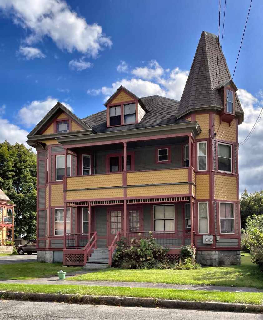 The first mayor of North Adams, Albert Charles “A. C.” Houghton (1844-1914), built this house on Church Street in 1897. Albert was born in Stamford, Vermont and would become president and principal owner of Arnold Print Works (now Mass MoCA campus) and the Beaver Mill in town. He did well for himself and had this large mansion built from plans by Berkshires architect Henry Neill Wilson. Tragically, on August 1, 1914, A. C. Houghton was being driven in town by his driver with his daughter Mary and her husband in the car. They crashed and both Mary and her husband died, with seventy-year-old Albert succumbing to his wounds over a week later in his home. His driver soon thereafter shot himself. The Houghton mansion was inherited by Albert’s wife Cordelia, who passed away in 1918. Their daughter Florence Gallup next inherited the mansion but was living in the Boston area, and she decided to sell the family home to the local Masonic Lodge in 1927. They likely added the brick addition at the rear for meetings and events soon after. It is not clear to me what the mansion is used for today, any locals have more information?