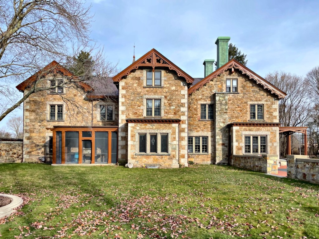 Tucked away behind the Ames Free Library in Easton, you will find one of the most stately examples of Gothic Revival architecture in a house in New England. The house is known as Queset House. Queset was commissioned to be built in 1853 and it was completed the following year for Oakes Angier Ames, of the wealthy Ames Family, who ran a shovelworks in town, and built some of the most handsome structures in the state. The house’s front portion design was drawn from a plan by noted architect Andrew Jackson Downing (who died in 1852). Downing collaborated with Alexander Jackson Davis who provided architectural drawings. The two architects created pattern books which greatly influenced Gothic Revival and Italian Villa style architecture for the next decades, with many wealthy people hiring builders to complete homes in their designs. Queset House is different than most in that the house is constructed of local stone. Oakes would later hire Harvard-educated architect John Ames Mitchell, (a first cousin of Oakes Angier and architect of the nearby Unity Church in Easton) designed the rear addition in 1873, adding the copper-clad chimneys. In the later years of his life, Oakes wanted to help further-improve his town and worked with his family to consult with starchitect H. H. Richardson and landscape starchitect Frederick Law Olmsted on projects in town (the Library, Town Hall, Rockery). After his death in 1899, the home was occupied by his son, famous theatrical producer Winthrop Ames, and his wife. The family would eventually gift the property to the Town of Easton, who today occupy it as an extension of the Public Library, open to the public!
