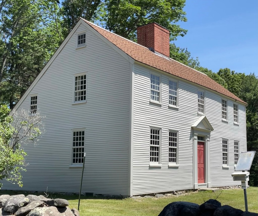 The Old Parsonage in Newington, NH, is a rare survivor from the 1700s in the tiny town. It is one of few extant “saltbox” houses to be found in the New Hampshire seacoast. Like most houses of this type, the parsonage has a lean-to that was added a few years after the house was built. Like the nearby meeting house, the parsonage has long been inextricably connected to the public life and the identity of Newington. Unlike the much-altered meeting house, the parsonage retains the appearance of the 1700s and has been extremely well-preserved, giving a glimpse into 18th century life in Newington. The parsonage is estimated to have been constructed in 1725 when Richard Pomeroy, the first Sexton of the church, sold the property here for 19 pounds, with no mention of a dwelling. It was acquired by a John Knight (1685-1765). After his death, the dwelling was sold to the Town of Newington and restored to be used as a parsonage.