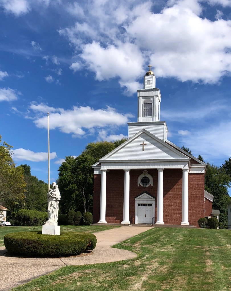 The congregation’s second sanctuary, this Colonial Revival church building was constructed in 1952 for the large Polish population in town. In the 1890s, Polish immigrants settled in rural Suffield in large numbers, many working on tobacco farms. The St. Joseph’s Polish Society was formed in 1905, with increasing demand for a sanctuary to worship. The lot at 140 S. Main Street was purchased in 1916 and the stable was converted to a church, with the home converted to the rectory. After WWII, the stable was clearly insufficient, and the site was cleared for a larger sanctuary which we see today.