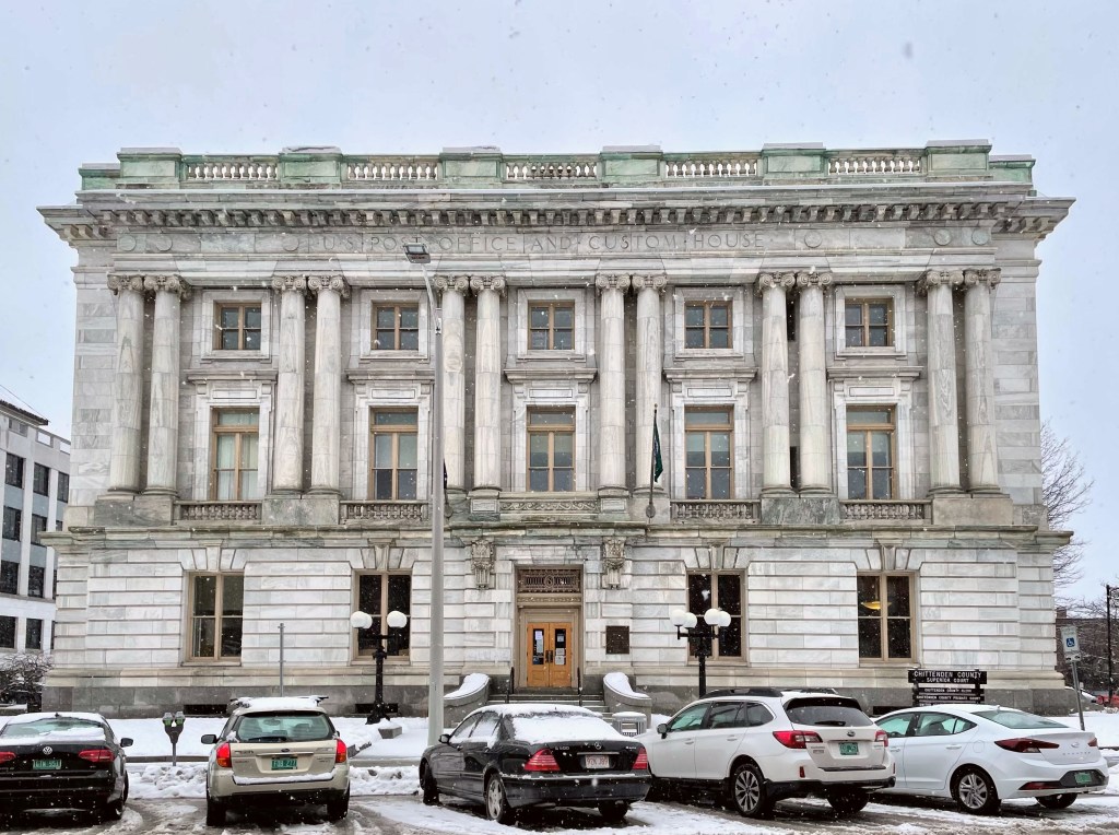 It saddens me to see photos and learn about some of the amazing buildings demolished in the name of “progress”; it is even more disappointing when said building is replaced by a surface parking lot (over 50 years later)! This great stone building was built in Rockland, Maine, in 1876 as the town’s post office and custom house by the Federal government. Relatively unknown architect Alfred B. Mullett is credited with the design as he served from 1866 to 1874 as Supervising Architect of the United States Treasury Department. The building can be classified as Italianate-Second Empire in style and is constructed of massive, rough-faced granite block walls with a shallow mansard roof above. The building was offered for sale by the U.S. Government in 1967, likely due to the upkeep costs and a shrinking local population with the dependency on maritime trade diminished. The building was ultimately razed in late 1969, with a new, uninspiring, post office built next door to this site.
