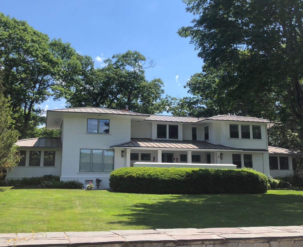 One of a handful of Prairie style homes in Maine, the Abbott Graves House – named ‘Westlook‘ – of Kennebunkport, was designed by Graves himself and built in 1905. The two-story residence is of frame construction with a low-hipped metal roof (originally red tile) and three internal brick chimneys. The exterior is covered with a simulated stucco finish.