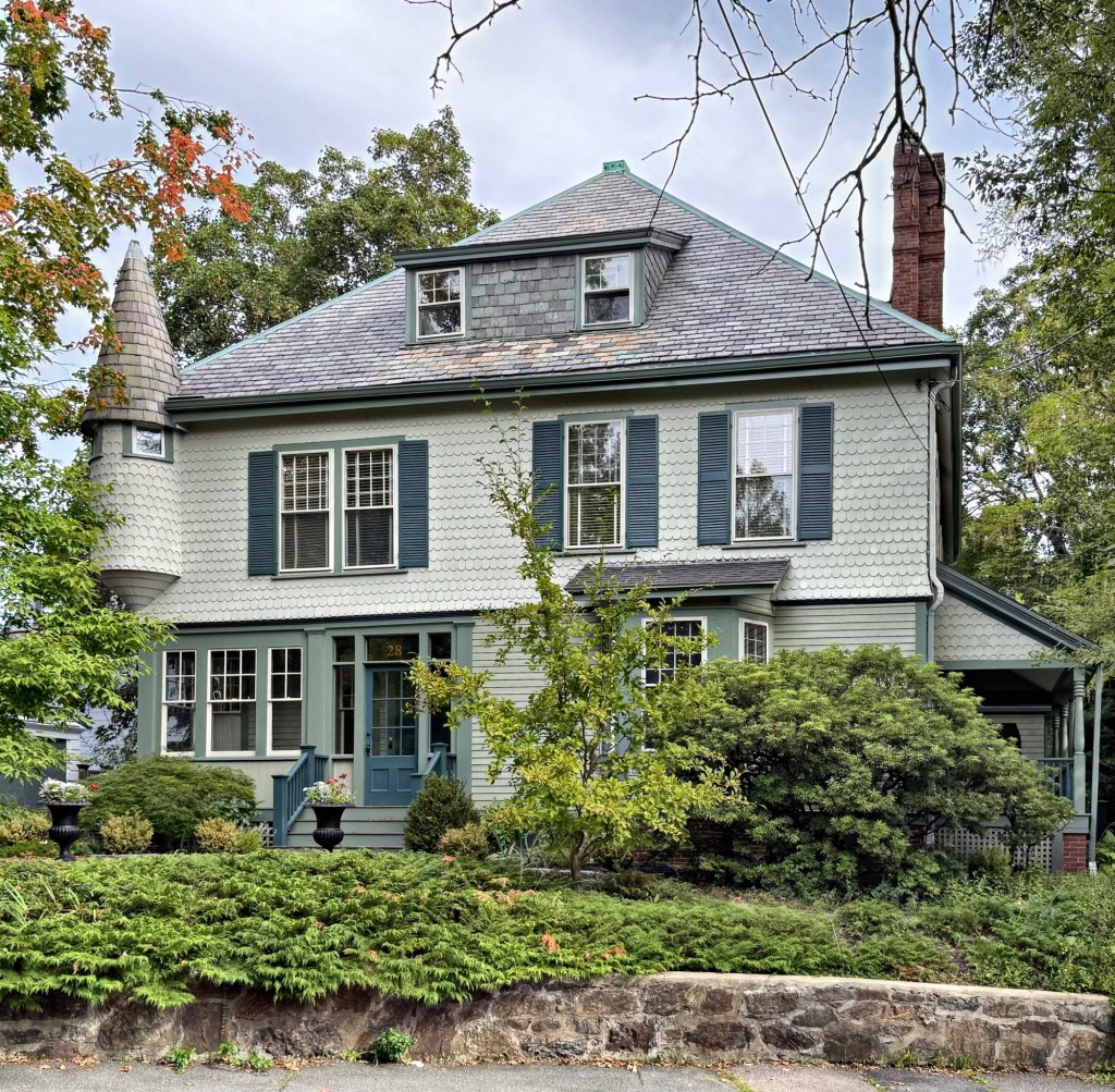 The finest extant Queen Anne Victorian-era house in the town of Deep River, Connecticut, is located on Main Street and since the 1930s, has been home to the town’s public library! How’s that for adaptive reuse?! This residence was built in 1881 for Richard Pratt Spencer (1820-1910), a local prominent businessman who lived to be 90 years old. Spencer lived here with his second wife, Juliana Selden, who was 32 years his junior, and three children until his death in 1910. When Spencer’s widow died in 1932, the heirs sold the property to the Saybrook Library Association (before the town renamed Deep River in 1947), which then, in turn, sold the building to the town for a small price in order to convert it into a library. Opened to the public in 1931, the Deep River Public Library has been preserved inside and out with historic fireplaces, woodwork, and features. The only notable change occured in 1995 when a children’s room addition was built to resemble an old porch. The library even retains the original pebbledash finish in the gables, a rare detail not commonly found in typical old houses of the period.