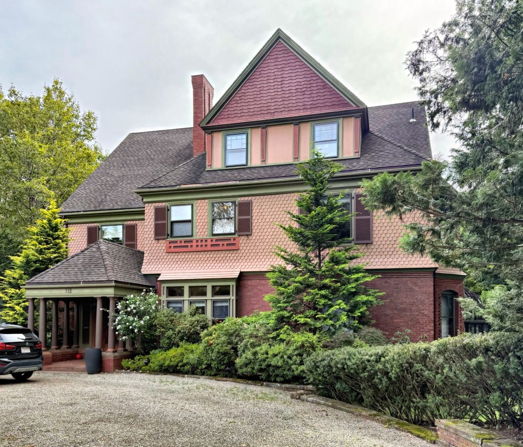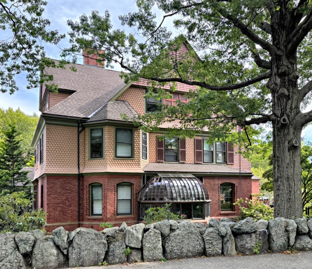 The finest extant Queen Anne Victorian-era house in the town of Deep River, Connecticut, is located on Main Street and since the 1930s, has been home to the town’s public library! How’s that for adaptive reuse?! This residence was built in 1881 for Richard Pratt Spencer (1820-1910), a local prominent businessman who lived to be 90 years old. Spencer lived here with his second wife, Juliana Selden, who was 32 years his junior, and three children until his death in 1910. When Spencer’s widow died in 1932, the heirs sold the property to the Saybrook Library Association (before the town renamed Deep River in 1947), which then, in turn, sold the building to the town for a small price in order to convert it into a library. Opened to the public in 1931, the Deep River Public Library has been preserved inside and out with historic fireplaces, woodwork, and features. The only notable change occured in 1995 when a children’s room addition was built to resemble an old porch. The library even retains the original pebbledash finish in the gables, a rare detail not commonly found in typical old houses of the period.