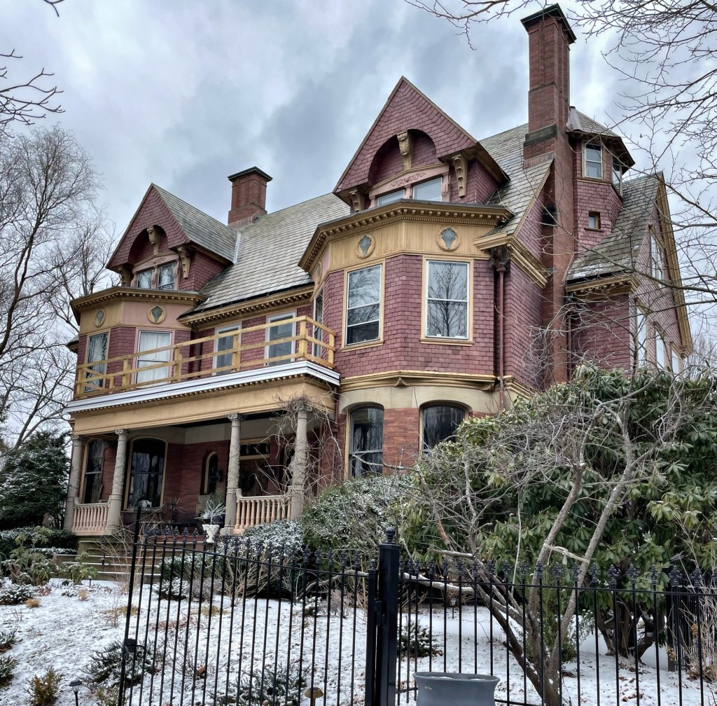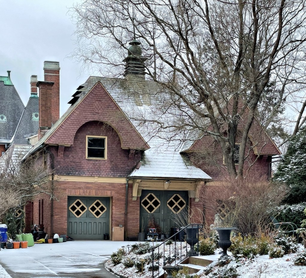 A lesser-known residence built for a member of the wealthy Thayer Family is this stately Queen Anne mansion tucked away in South Lancaster, Massachusetts. The John E. Thayer Mansion was built in the 1880s for its namesake, John Eliot Thayer (1862-1933), who graduated from Harvard College in 1885 and engaged in business before becoming one of the world’s most prominent ornithologists. John began collecting and housed his collections in several wooden buildings close to his home in Lancaster, but when these became unsafe and crowded he built a beautiful brick building in 1903 nearby, opening it to the public as a museum a year later. John Thayer hired esteemed Boston architect, John Hubbard Sturgis, who was then working with his nephew, Richard Clipston Sturgis, to design the English Queen Anne style country mansion. The residence features a stone first floor with wood-frame above that is given half-timbering treatment, suggesting the English design. John Thayer’s country mansion was a short walk away from his twin brother, Bayard Thayer’s mansion, and his other brother, Eugene’s country house, both in Lancaster. The house remained in the Thayer family until the 1960s, and was recently sold to new owners. The interiors are some of the best preserved for a country estate I have seen and worthy of the Thayer name.