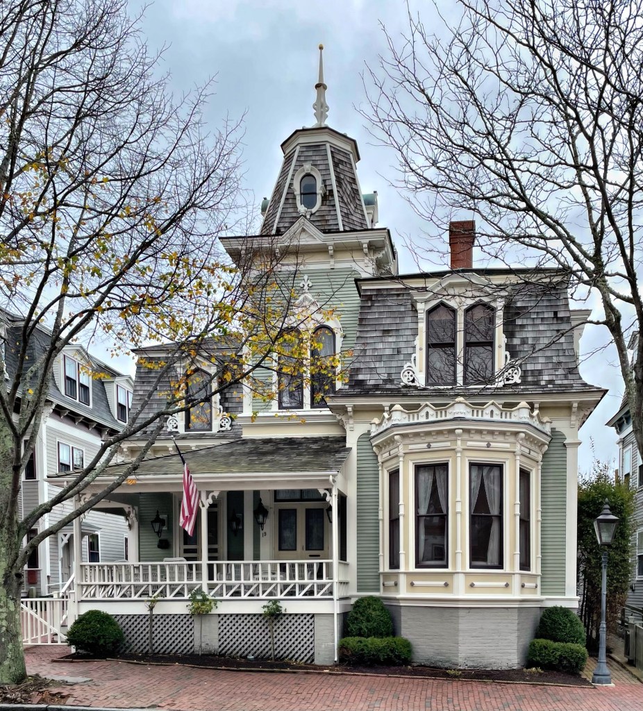 Another of the less common Victorian-era houses on Nantucket is this beauty located right on Main Street, named after its first owner. Eliza Starbuck was the third child of Joseph Starbuck and Sally Gardner, a Nantucket family that had become wealthy in the whale oil industry. At 18, Eliza married Nathaniel Barney and despite their wealth, the couple shared a home with Eliza’s sister, Eunice, and her husband William Hadwen. The husbands became business partners, opening a whale oil refinery on the site of the current Nantucket Whaling Museum. This house was built around 1873 for Eliza Starbuck Barney after the death of her husband. Mrs. Barney is best known as an abolitionist, a temperance and women’s suffrage advocate, and a local genealogist. The home is a fine example of Italianate-style architecture. Note the round-arch or Roman windows and bracketed cornice typical of the style.