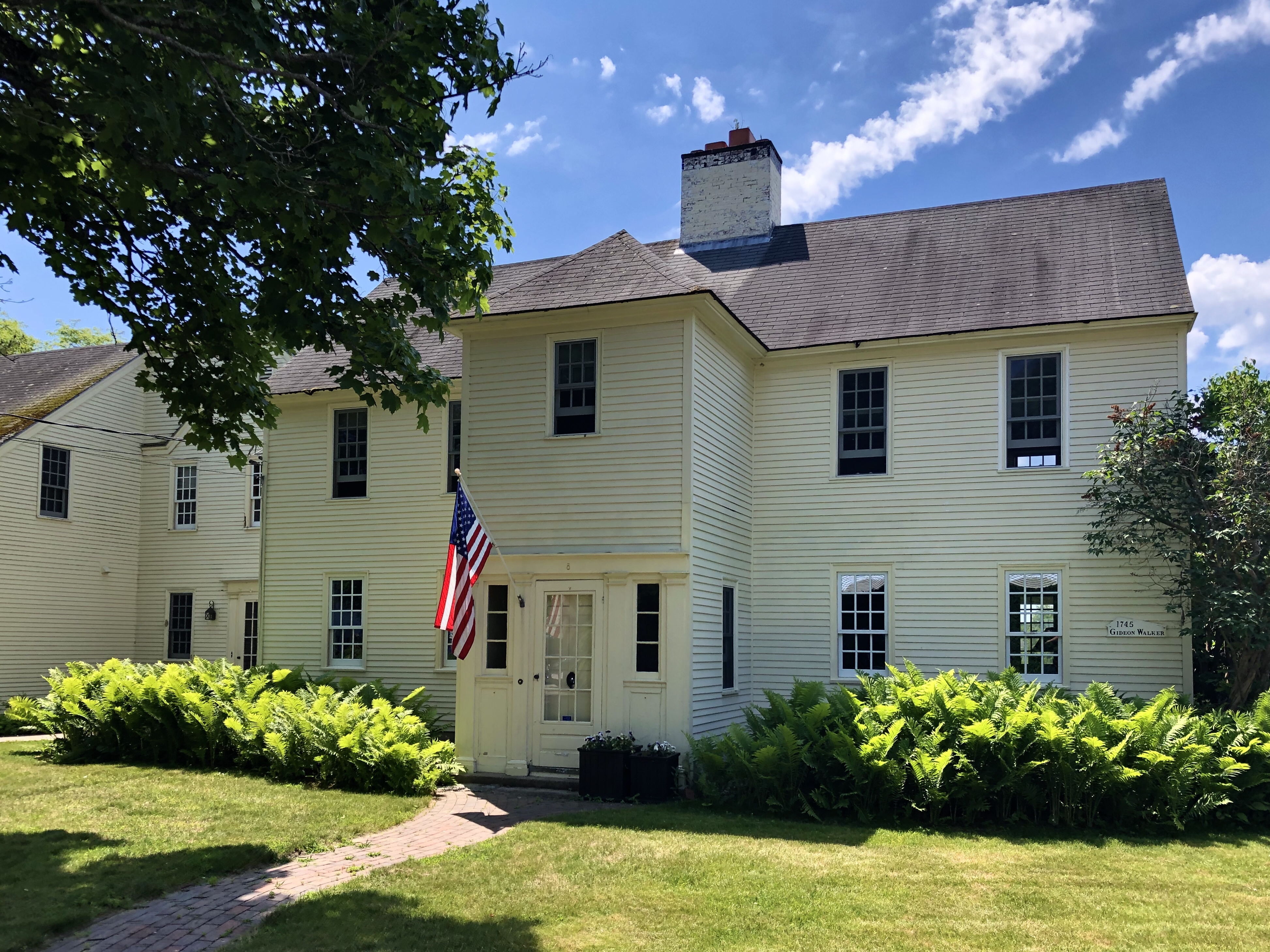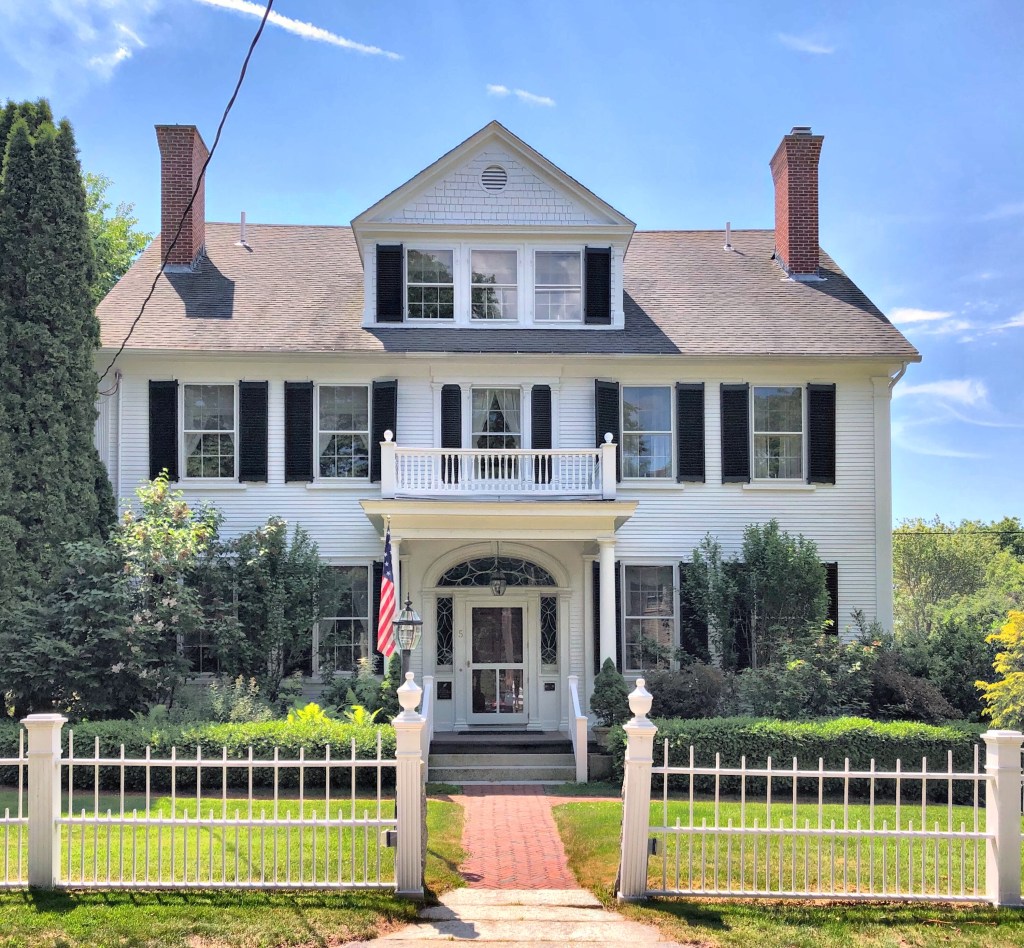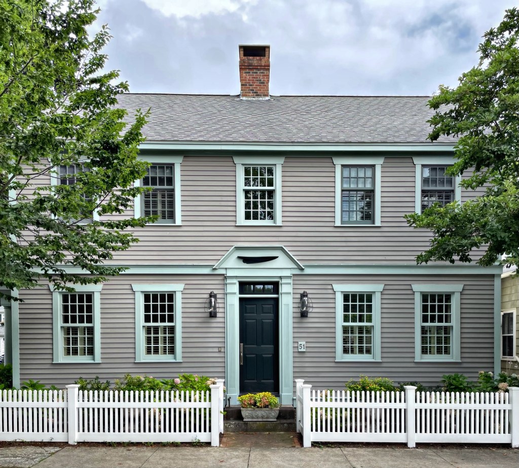 Believe it or not, this beautiful home was once a one-story Cape house! Built in 1828, the home was constructed for Captain Hiram Look, a sea captain, and his new wife Kezziah (Kezia) within a year of their marriage. They had two daughters. Hiram died in 1865, possibly related to the Civil War, which ended that year. After his and his widow’s death, the home was willed to their daughter and her husband, Bernard Coggeshall, who was likely a descendant of the Coggeshall Family of Bristol, RI. The Look daughter died in 1890, and Bernard remarried a year later. Sometime after 2008, this home was enlarged, giving it the second story we see today. If you look closely at photos from before 2008, you can see the matching door surround, window lintels, and window spacing seen today. While the home is completely different, the “updated” version is still appropriate and conveys the home’s history.