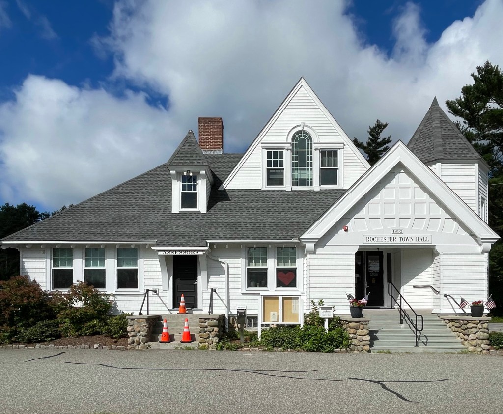 In 1679, three years after the end of King Phillip’s War, an armed conflict in 1675–1678 between indigenous inhabitants of New England and New England colonists, land that would become Rochester, Mattapoisett, Marion, and Wareham was purchased from King Phillip, and immediately divided among 32 proprietors of “Old Rochester.” The first white settlers took up residence in 1680, and the Town of Rochester was incorporated in 1686. Rochester town center was formally established in 1697 when land was set aside for a meetinghouse, burying ground and training field. Rochester’s first meetinghouse, built in 1699, served as a church and town building. A larger meetinghouse was built in 1717, and a third in 1760, doubling in size every time as the town’s population grew. The old buildings were insufficient for the growing farming town, and wealthy widow Elizabeth Leonard funded half the cost of a new town hall building. The current structure on the town green was built in 1892 and is an uncommon example of a Queen Anne style town hall in Massachusetts. The building originally was painted a darker color, common in the style, but was given a bright white paint scheme to blend in with the older buildings on the Green.