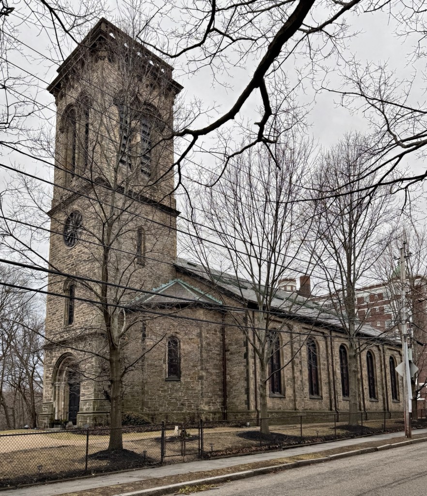 Christ’s Church in Longwood, better known as Sears Chapel, is among the finest ecclesiastical buildings in Brookline and commands its site on a rise overlooking the Muddy River, now the Riverway in the Emerald Necklace park system. The area presently known as Longwood was originally marshland with a few farms until the building of the Mill Dam road out of Boston in 1821 that improved access to Brookline, which opened up its connectivity and development potential. Wealthy Boston businessman, David Sears (1787-1871) recognized this, and began buying the low-lying pasturelands in Brookline near the Boston border. By 1830, some squares were laid out and development began in the Cottage Farm and Longwood sections. He, with associates, began building country estates for friends and family to escape the crowded conditions of Boston. He is said to have named his neighborhood “Longwood”, after Napoleon’s estate on St. Helena where he spent his days in exile. An avid amateur horticulturist, Sears planted some 14,000 trees, many of them imported from Europe, in the course of developing his land. In keeping with his faith, Sears built this house of worship, Christ’s Church, which is said to have been modeled after St. Peter’s in Colchester England, likely giving Colchester Street, where Sears Chapel is located, its name. The Romanesque style church was designed by Boston architect, Arthur Gilman, who designed the building suitable for the Sears Family crypt which is underneath the structure and the burial site of many of the family. The congregation remains active to this day who maintain the significant structure and its many historic stained glass windows.