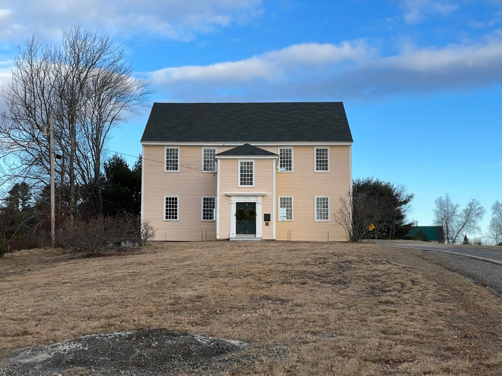 Located on a hill overlooking the Head Tide Village of Alna, Maine, this stately brick farmhouse has sat for roughly 200 years. According to old maps of the area, the property was occupied by the Bailey Family as far back as the land was surveyed in 1813. The property was owned by Ezra Bailey, who possibly built the house soon after as the village began to develop. By 1857, the property and its house were owned by I. H. Bailey, seemingly Ezra’s son, Isaac, who married his first cousin, Laura Palmer. The couple resided in the old homestead until they sold it in 1866, moving to Boston. The brick, Federal style house has a four bay facade with the entry door surrounded by a recessed arched relief. Above the door is a blind fan with sidelights.