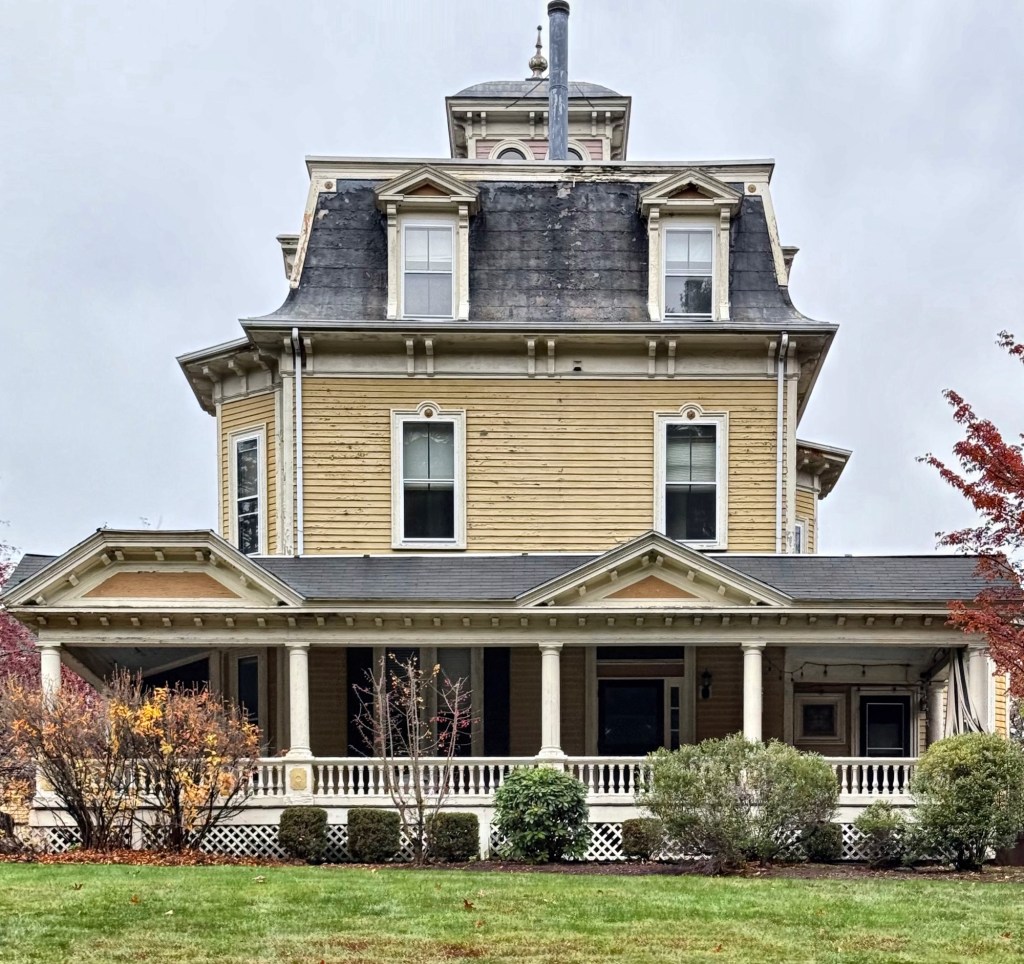The neighborhood now known as Ashmont Hill had its origins in 1870, when George Derby Welles, who was 26 years old and living in Paris, inherited extensive landholdings in this area from his grandfather’s estate in Dorchester. Welles engaged representatives to subdivide the land. Some parcels were developed with high-style rental properties, managed by his representatives while living abroad, and others were sold and developed by builders, designing homes in the prominent styles at the time. In the early 1870s, the Second Empire style was most popular, though began waning in popularity for Stick and Queen Anne styles. Lots on Welles Street were purchased by Mr. George Tatro, a builder and developer who seemingly designed and built two near identical houses at 48 and 52 Welles street. The houses were completed by 1873 at the time of The Panic, an economic downturn triggered by industrial and railroad over-expansion and consequent bank and business failures. The property was sold, but remained vacant until it was taken over by a bank and then purchased by Catherine Stevens Tyng, the widow of Reverend Dudley Atkins Tyng, who died at just 33-years-old from a freak accident at home. Catherine moved to the area, first settling in Cambridge, to follow her two sons who attended Harvard College, before selling the house and moving to New York. The Tatro-Tyng House is a stunning, and well-preserved example of the Second Empire style, with a shingled bay window and bay dormer in the mansard with applied ornament.