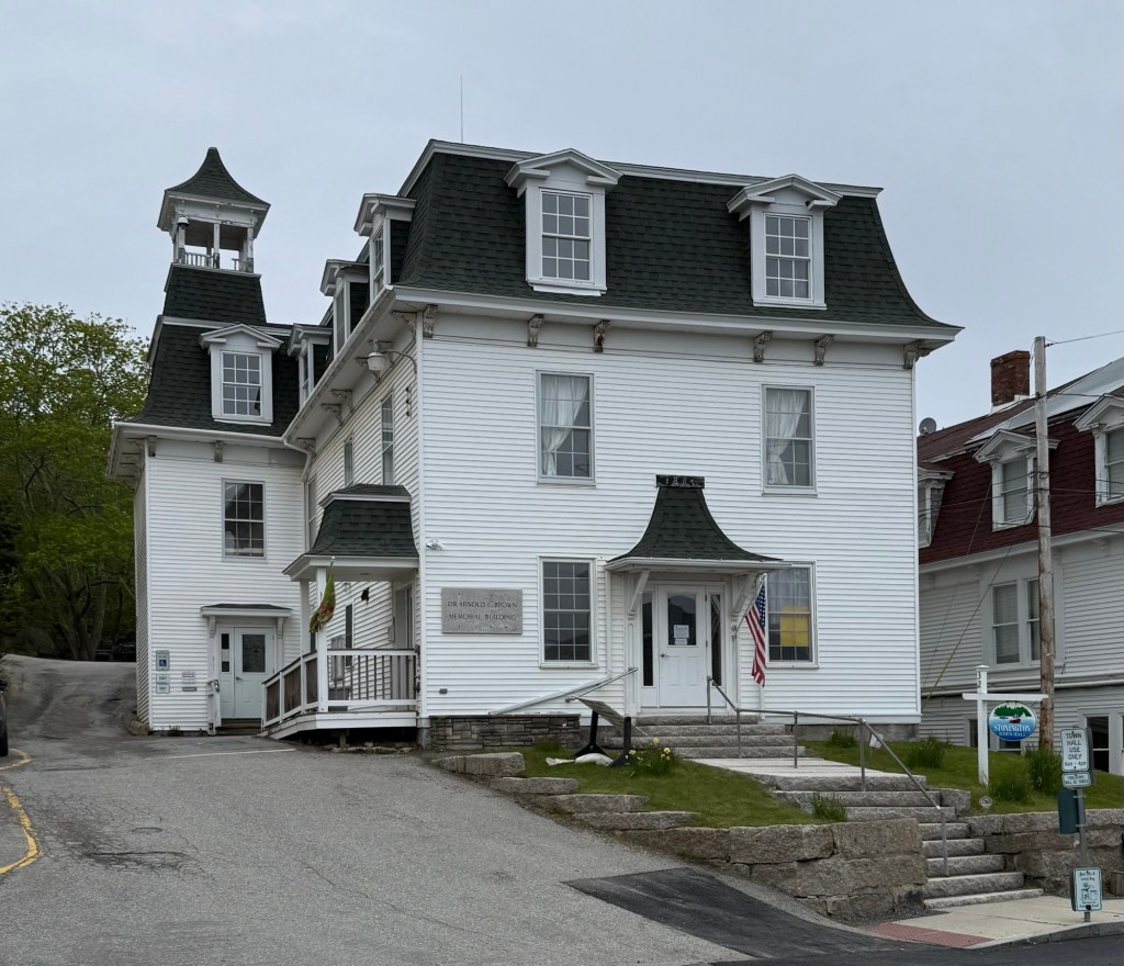 Overlooking an archipelago of over sixty islands, the working port town of Stonington, Maine, is one of the more vibrant and active ports in the Pine Tree State. With a population of just over 1,000 residents, the town is consistently ranked among the top lobster ports in the country and is the largest lobster port in Maine. In 2011, 14,854,989 pounds of lobster were landed by Stonington fishermen! The town was originally a part of Deer Isle, with the main village known as Green’s Landing, until 1897 when it incorporated as its own municipality in 1897, choosing the name Stonington after the area’s granite quarries. This handsome mansard building was constructed in 1885 as the village’s school. Named Rockbound School, the building features an intact belltower at the rear. The school would eventually close in the second half of the 20th century, and became the Town Hall of Stonington after a fire destroyed the previous building in the 1970s.