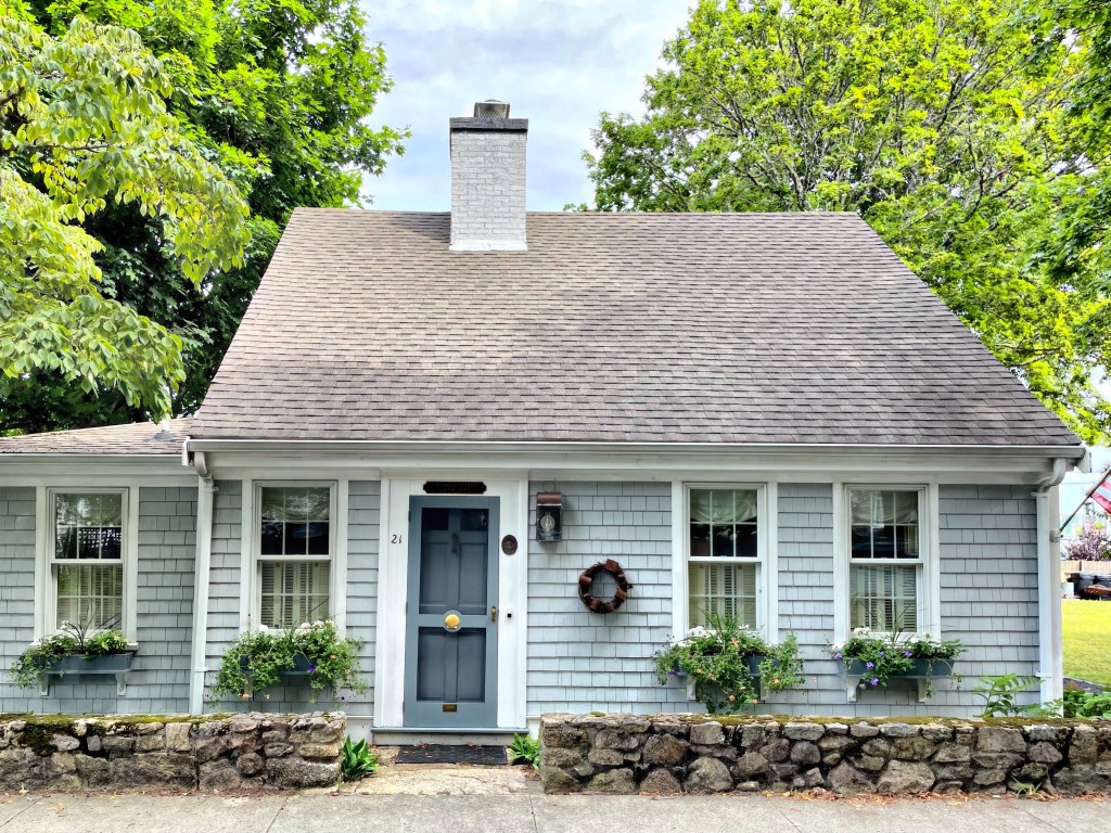 The oldest home in Marion, this c.1675 Cape house apparently has interior structural elements dating the home to the earliest colonized days of Sippican Village. The tiny home was built for a member of the Ryder family around 1675, according to the Sippican Historical Society. It was recorded and noted as standing by the 1690s. The home is an example of a three-quarter cape, meaning there are two bays on one side of the front door and one on the other side. During colonial times, for economic reasons, a newly married couple could build a half-cape house with a door, two windows to one side of the door and a single fireplace heating multiple rooms. It was expected that they would expand the house to either a three-quarter house by adding a single window on the other side of the door or doubling the size of the home adding two other bays, all rooms heated by the central chimney.