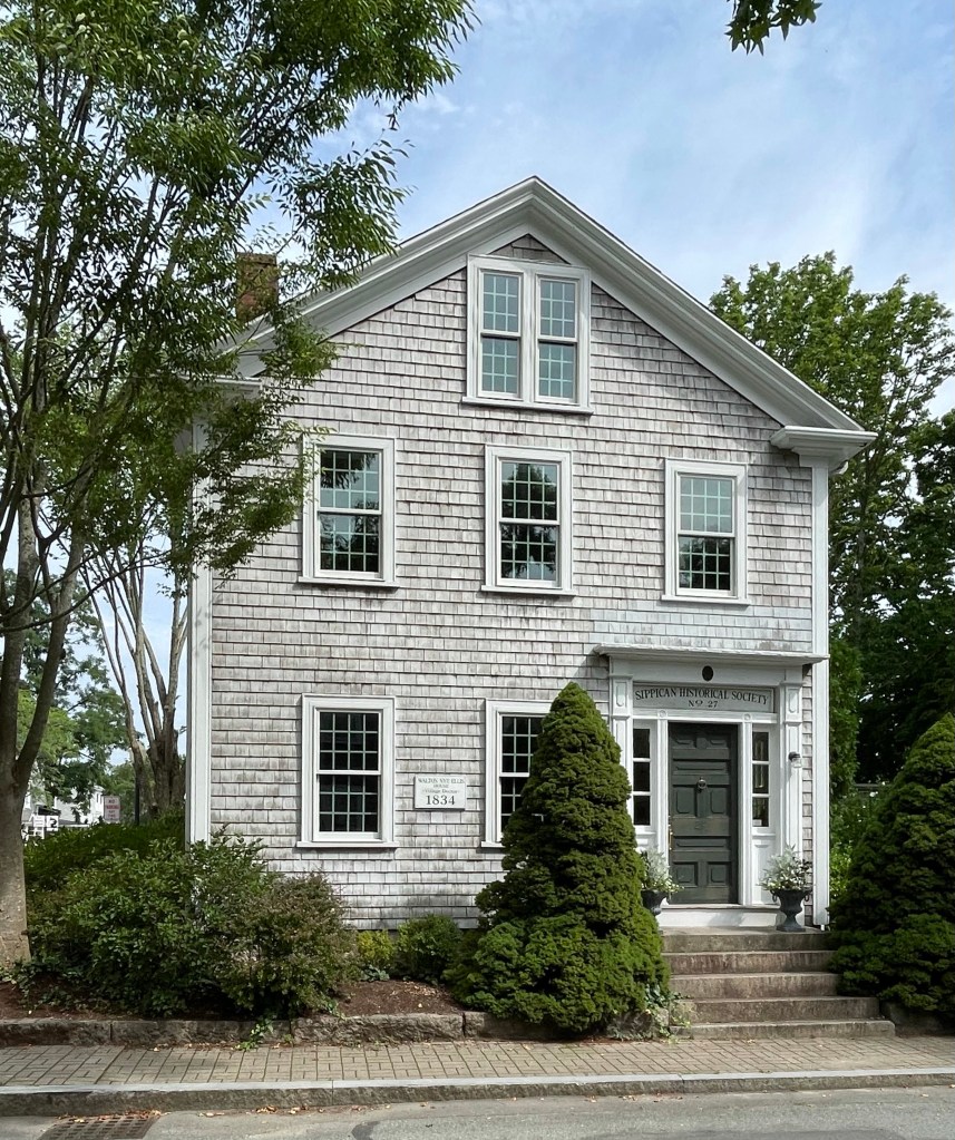 This house was built in 1839 Dr. Walton Nye Ellis (1808-1867), who served as physician in Marion in the second quarter of the 19th century. Born in Wareham, Ellis moved to Marion, and married Susan Delano (1809- 1840) after her death, within the year, he married Lucy Clark Allen (1820-1885); he had a daughter with his first wife and four daughters and three sons with his second. By 1838, he purchased a lot in Sippican Village for the price was $225. In 1855, Dr. Ellis organized a meeting of prosperous Village men, mostly sea captains, with the purpose of planning a library for the town. They pooled resources and funded a library which was located in a large closet on the second floor of his home seen here. The library’s books could be borrowed for a few cents a week. Subsequent funding from Elizabeth Taber helped create the Taber Library just decades later. In the 1960s, the home was gifted to the Sippican Historical Society, who remain in the building to this day.