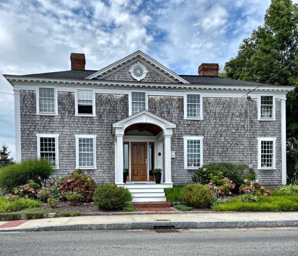 Built around 1790 for Rowland Luce (1756-1835), this Federal home oozes character and charm, and is located right on Main Street in one of my favorite towns, Marion, Mass. Luce was born in Tisbury on Martha’s Vineyard into a very religious family. While studying to become a Deacon like his father, the Revolutionary War broke out, and Rowland served to fight the British, leaving service as a Major. He eventually settled in Marion’s Sippican/Wharf Village and worked as a Deacon for the Congregational Church. The simple house is clad in cedar shingles and has two chimneys, a departure from earlier homes with one, large central chimney.