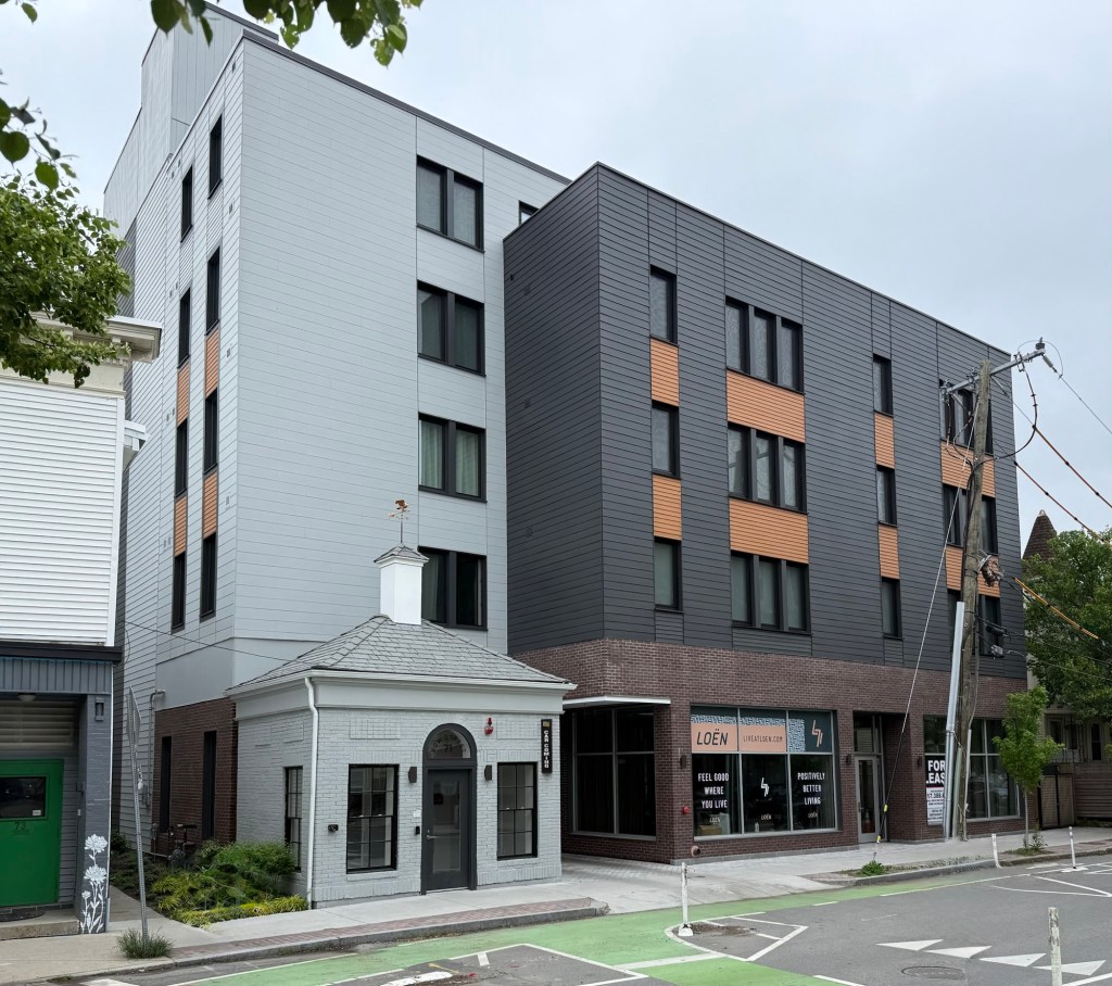 Union Square is the oldest and largest commercial district in Somerville, and its growth is tied to the residential and commercial growth of the City. The three main streets that form Union Square—Somerville Avenue, Bow Street, and Washington Street—were originally 17th- and 18th-century trade routes used by farmers in Somerville  to transport products, mostly dairy and produce, to larger markets in Charlestown and Boston. As the region grew, so did Union Square, with later hotels, civic buildings, churches and later, more car-centric uses like automobile garages and gas stations. By the 1920s, prosperity stagnated and one-story commercial blocks replaced larger, more ornate structures. This small building, the Cities Service Refining Co. Fuel Station at 69-71 Bow Street, was built in the mid-1920s and is an example of the wave of automobile-oriented development that occured here at the time. Before WWII, many service station companies created brand-identities by designing the appearance of their service stations like the Cities Service Stations and Beacon Oil Company, who regionally, developed distinctive Colonial Revival cottage prototypes for their chains to fit better within local context. This small service station, now 100 years old, is Colonial Revival in style with a hipped roof with cupola, symmetrical facade, and fanlight transom over the center entrance. When a developer proposed to demolish the station, the local preservation commission found the building preferrably preserved, initiating a delay on the demolition, forcing the developer to either wait out the delay or incorporate the structure into the new building. They chose the latter, and now we can visually see the layering of history on this site in Union Square, incorporating preservation with a 24-unit passive house development with the old station used as a mailroom. What do you think of this story?