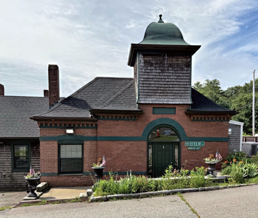 The Queen Anne style pumphouse of the Kingston Waterworks in Kingston, Massachusetts, is a unique brick building capped with a hipped roof and wood shingle tower over the arched entrance, surmounted by a bell-cast metal roof. The structure was built in 1888 from plans by Quincy Adams Faunce, a mason, who likely worked with an architect to design the building. Before the building was completed, residents had to pump and transport their own water. This was until the first private Kingston Aqueduct Company formed, when householders of means bought stock in the company. The Aqueduct Company used a natural spring near a local pond. Before the waterworks, water was piped through the village through hollowed logs with their joints covered with iron bands. The building remains a well-preserved and significant structure that allowed Kingston to grow from a sleepy agricultural town to a vibrant community.