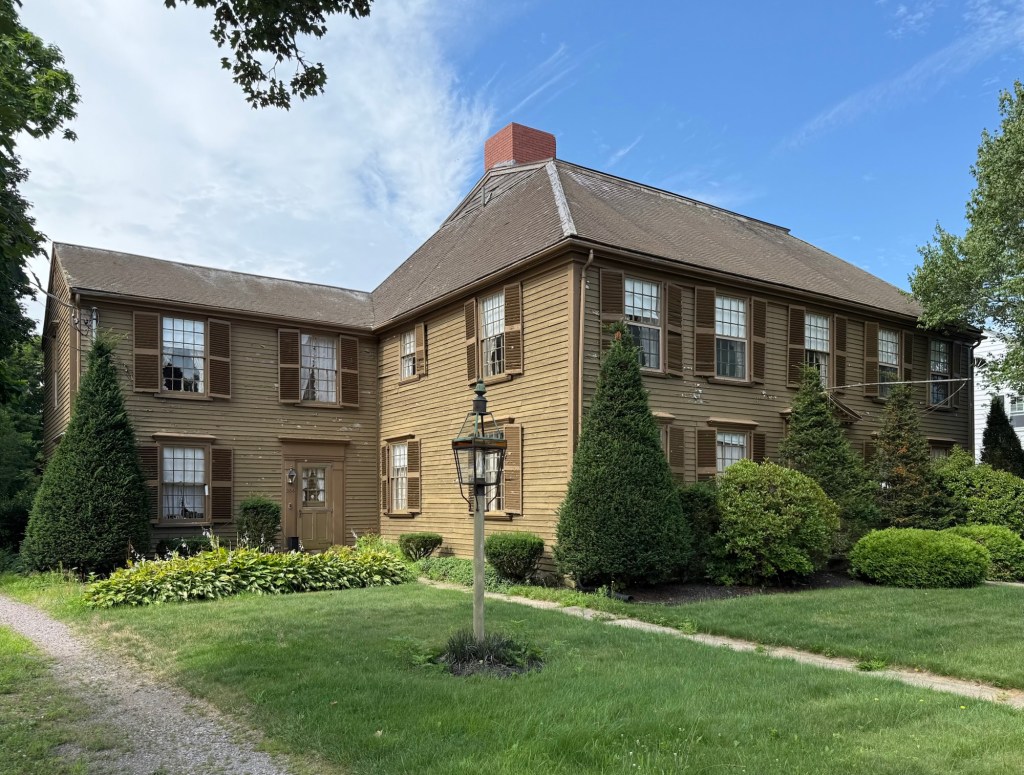 The William Sever House is an architecturally and historically significant residence in the town center of Kingston, Massachusetts. A prosperous merchant, owner of ships involved in coastal and international trade and member of the colony’s House of Representatives, William Sever (1729-1809) was prepared to erect a home of appropriate status when he married his cousin, Sarah Warren, in 1755. Sever joined his father Nicholas Sever’s commercial shipping business after graduating from Harvard College in 1745 and in 1754, was elected to the Massachusetts Bay Colony’s House of Representatives. In 1769, Squire Sever was elected to the Governor’s Council, a position he held until 1774 when he joined the Provincial Congress. Due to his experience and seniority, Sever was appointed to head the Congress and was declared “President of Massachusetts” and endowed with the governor’s executive powers. After his death in 1809, the house remained in the Sever family for generations, including as a summer residence for James W. Sever, the namesake of Sever Hall at Harvard University. The residence is well-preserved and showcases the telescoping nature of some of these early Colonial-era properties, with the main house adjoined by a barn and carriage house and diminutive ells and was thoroughly documented in the 1930s through the Historic American Buildings Survey, with detailed drawings, plans, and photographs of the exterior and interior spaces.